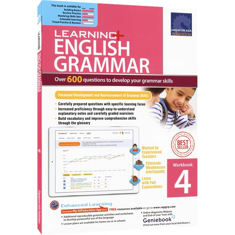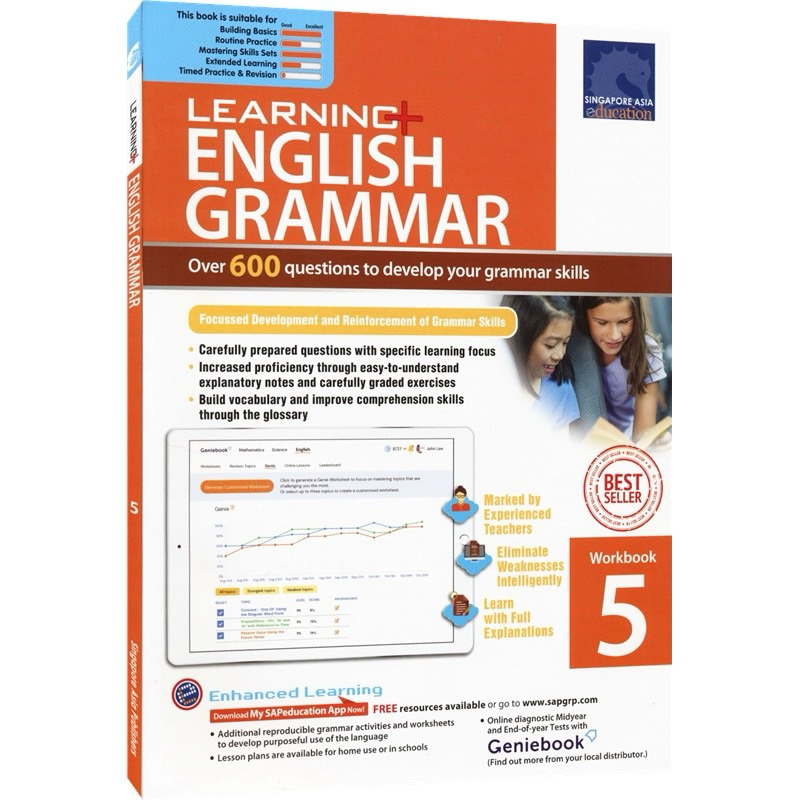 Learning English Grammar Workbook Grade 1-6 , Aged:7-12