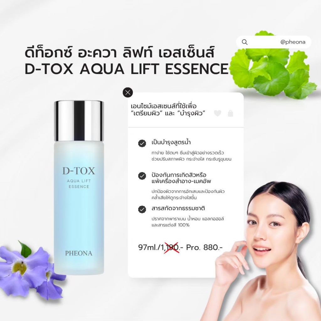 ฟีโอน่า ดีท็อกซ์ อะควา ลิฟท์ เอสเซ็นส์ D-TOX AQUA LIFT ESSENCE น้ำตบบำรุงผิว