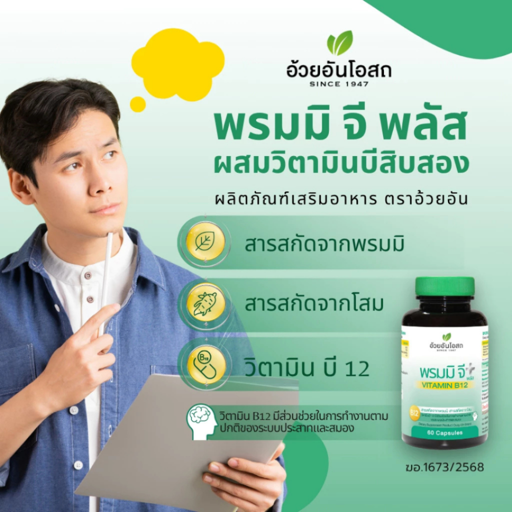 อ้วยอัน พรมมิ 60เม็ด อาหารเสริมบำรุงความจำ พรมมิ /พรมมิ จีพลัส Herbal one อ้วยอัน