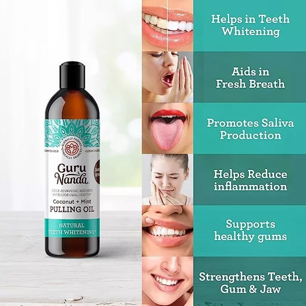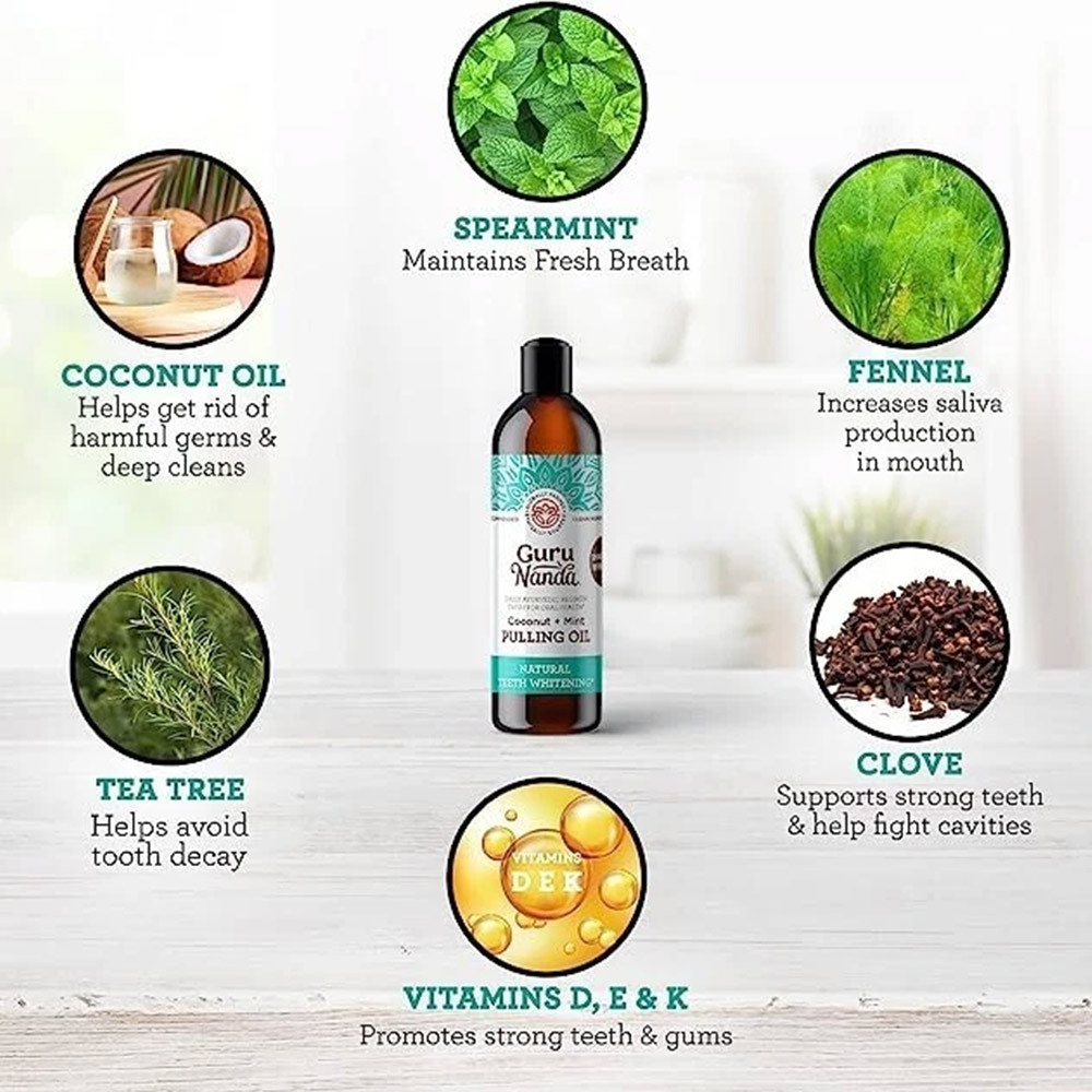 GuruNanda Mouthwash 237ml Guru Nanda Pulling Oil Coconut Mint Teeth Whitening Oral Rinse Oral Health