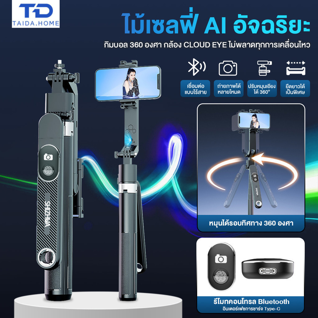 [ของแท้] ไม้เซลฟี่พร้อมขาตั้งกล้อง ไม้เซลฟี่ไร้สายรุ่นใหม่ ขาตั้งกล้องอัจฉริยะ AI ขาตั้งกล้องติดตามใบหน้าอัตโนมัติ 360°