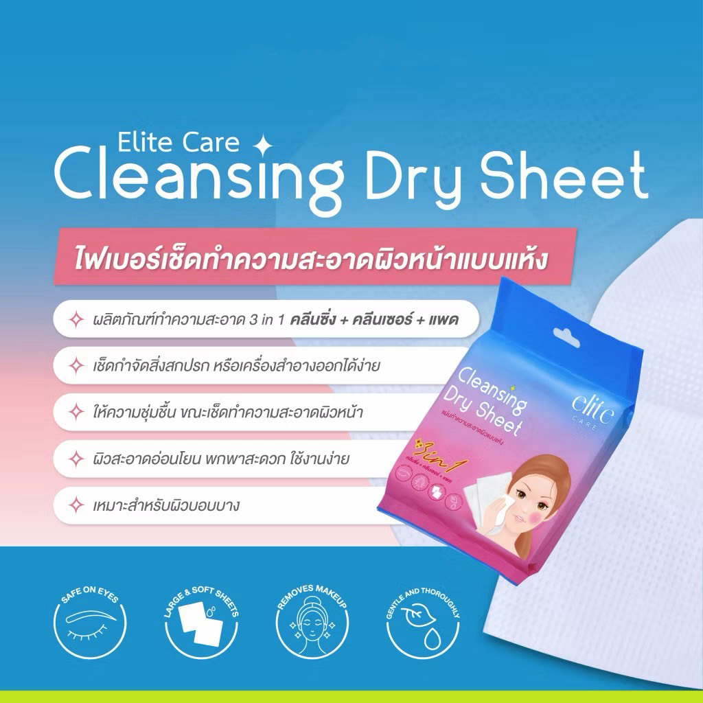 Elite Care Cleansing Dry Sheet แผ่นเช็ดทำความสะอาดแบบแห้ง 3in1 คลีนซิ่ง คลีนเซอร์ แพด