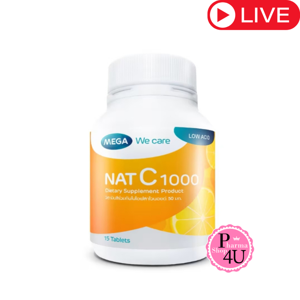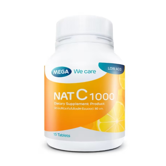 MEGA We care เมก้าวีแคร์ NAT C 1000 MG. (15 's) วิตามินซี 1000 มก. 15 เม็ด #L1