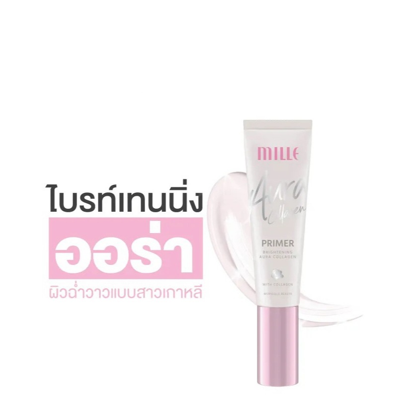 ** 1 หลอดชมพู ** Mille Brightening Aura Collagen Primer 8g. มิลเล่ ไบรท์เทนนิ่ง ออร่า คอลลาเจน