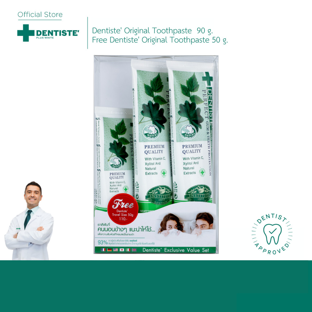 [แพ็คสุดคุ้ม 2 ฟรี 1] Dentiste Nighttime Toothpaste 90 g. Free! 50 g. ยับยั้งแบคทีเรีย หอมสดชื่น