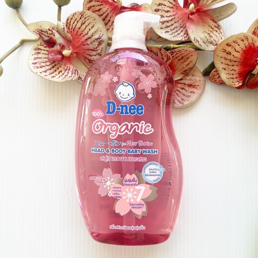 800 ml. ผลิต ดีนี่ ซากุระ สบู่เหลวอาบน้ำและสระ สีชมพูแบบใส D-Nee Sakura Head & Body Baby Wash For New Born