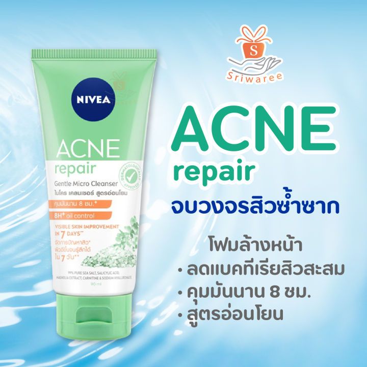ใหม่ Exp.27 | Nivea นีเวีย แอคเน่ รีแพร์ เจนเทิล ไมโคร คลีนเซอร์ โฟม 90 มล.