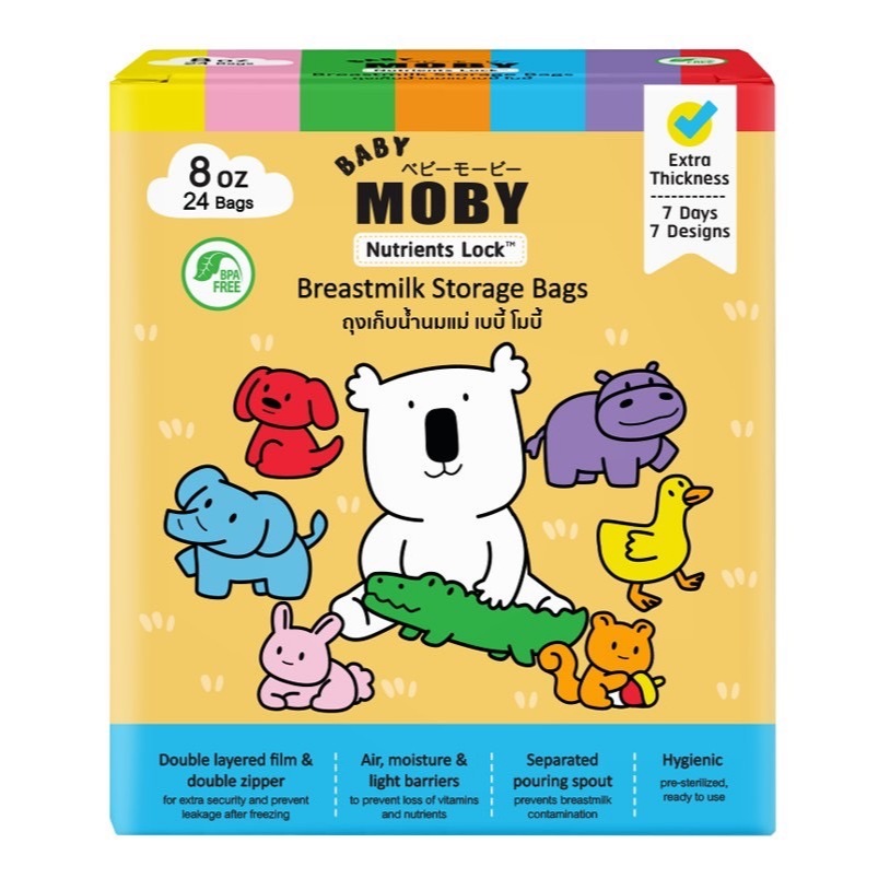 Moby rainbow ถุงเก็บน้ำนม รุ่นทึบแสง ป้องกันแสง อากาศ ความชื้น และช่วยลดการเหม็นหืน
