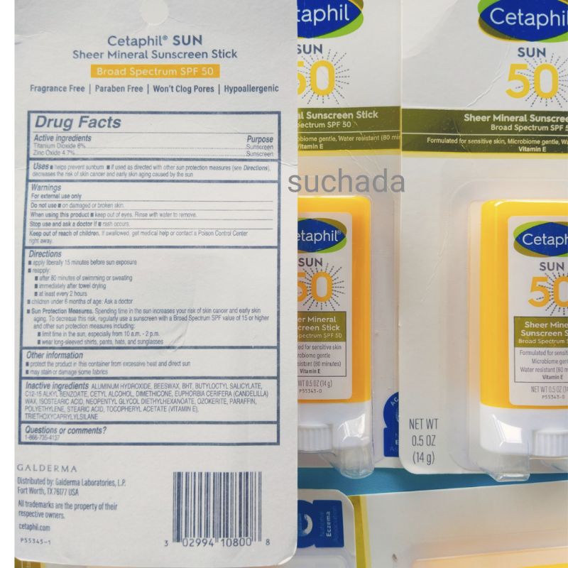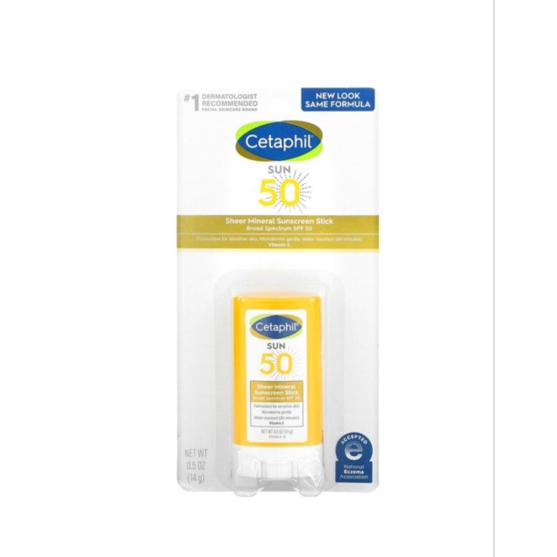 🙀หมดอายุ 01/2027 Cetaphil Sheer Mineral Sunscreen Stick, SPF 50 ,14g.กันแดดชนิดแท่ง กันน้ำ อ่อนโยน ผิวแพ้ง่าย