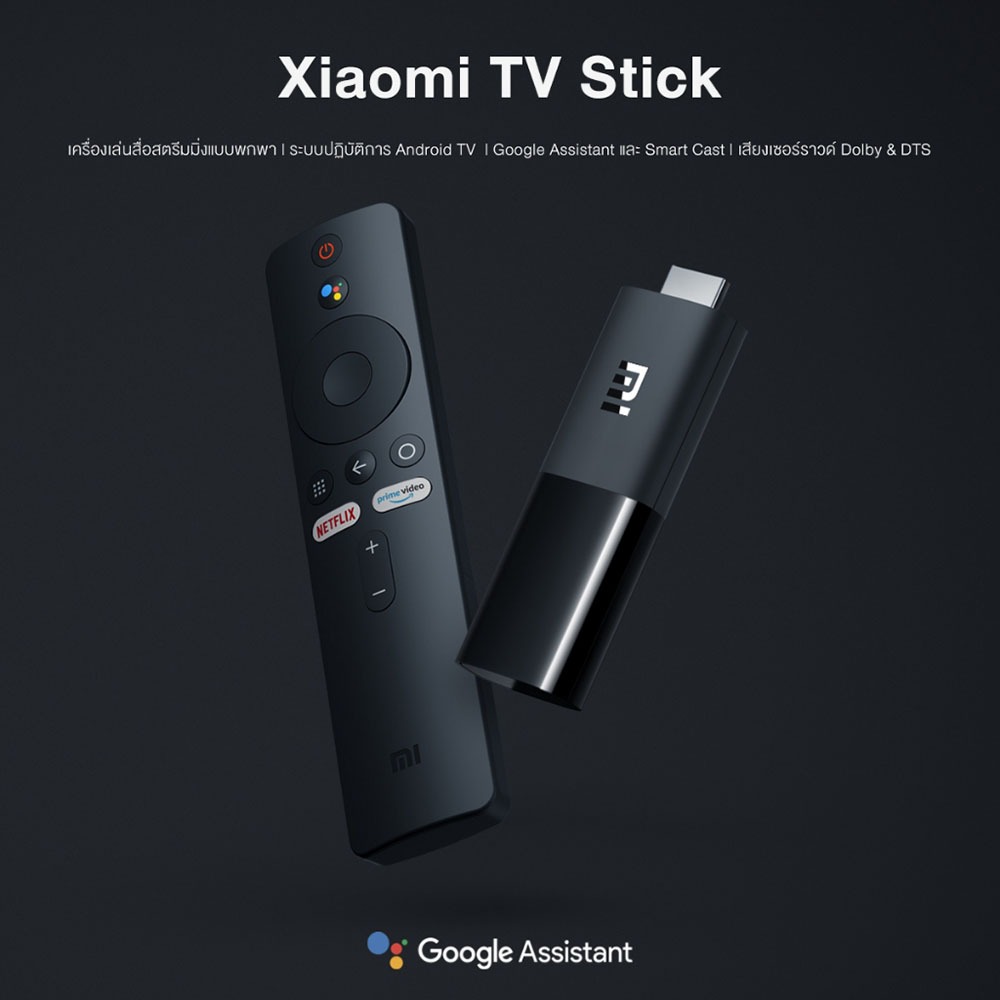 (รับประกันศูนย์ไทย) Xiaomi TV Stick 1080P แอนดรอยด์ทีวีสติ๊ก Android TV เชื่อมต่อ HDMI รองรับภาษาไทย Netflix,HBO -1Y