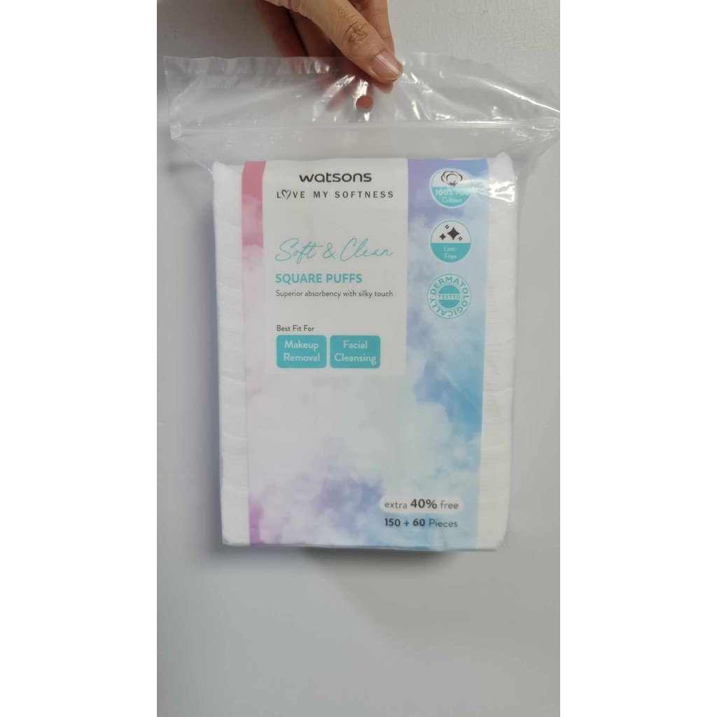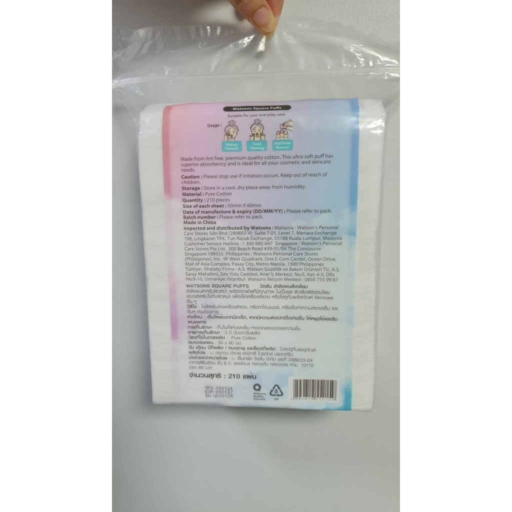 วัตสัน สำลี สี่เหลี่ยม 210 แผ่น แบบถุงซิปล็อค WATSONS square facial puffs