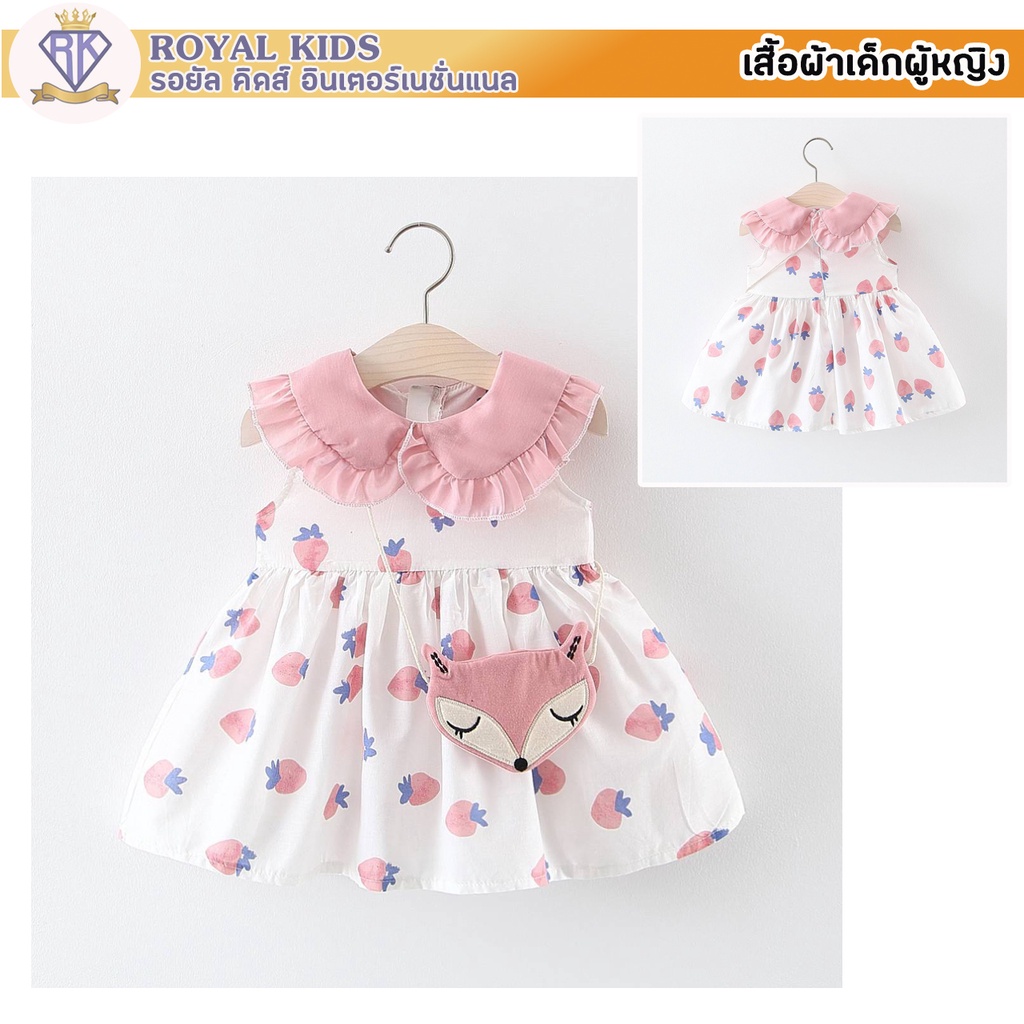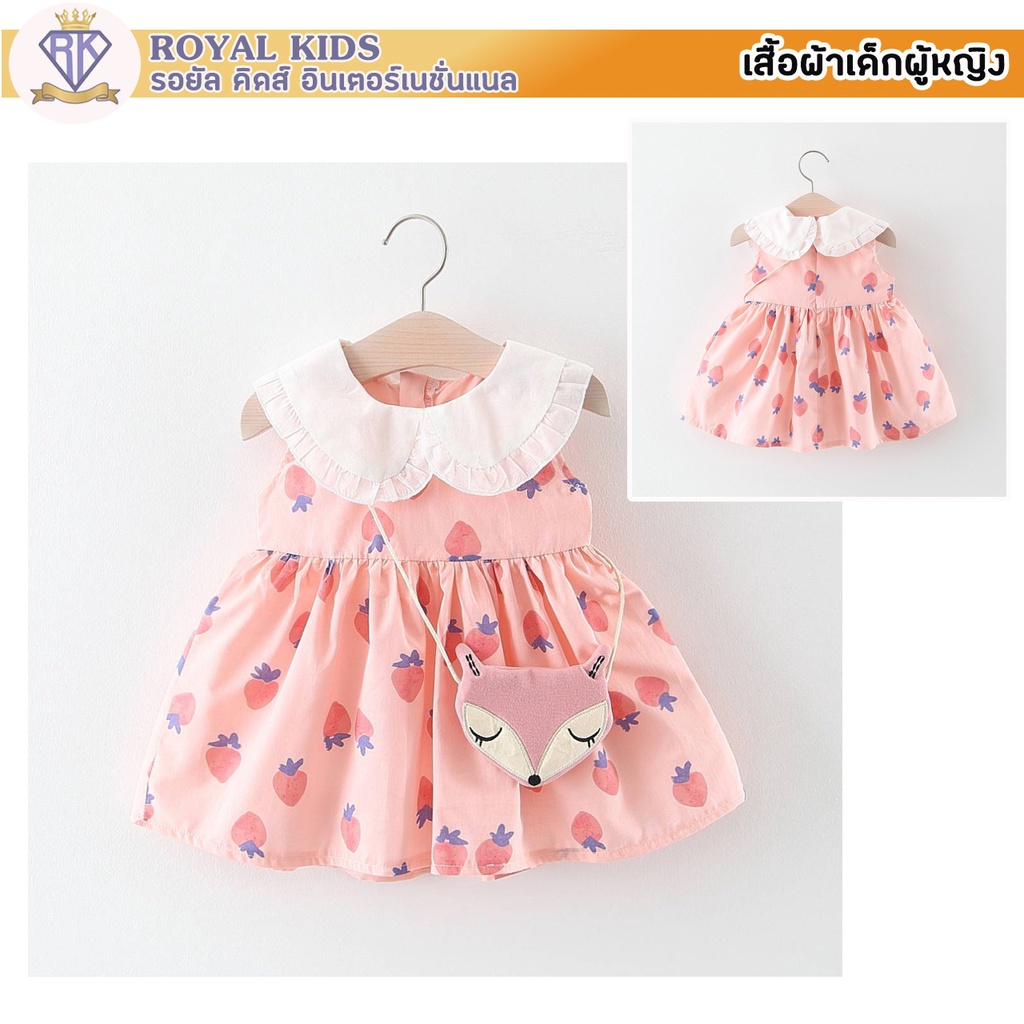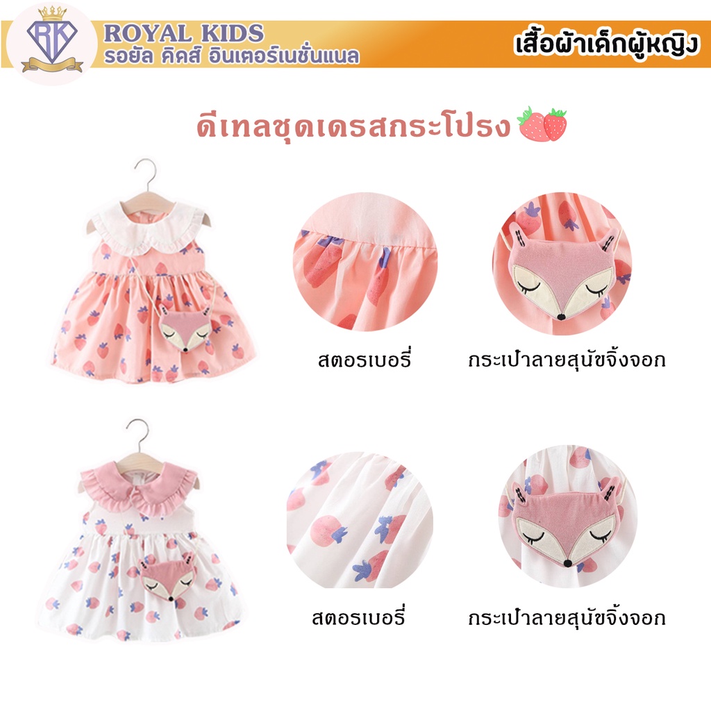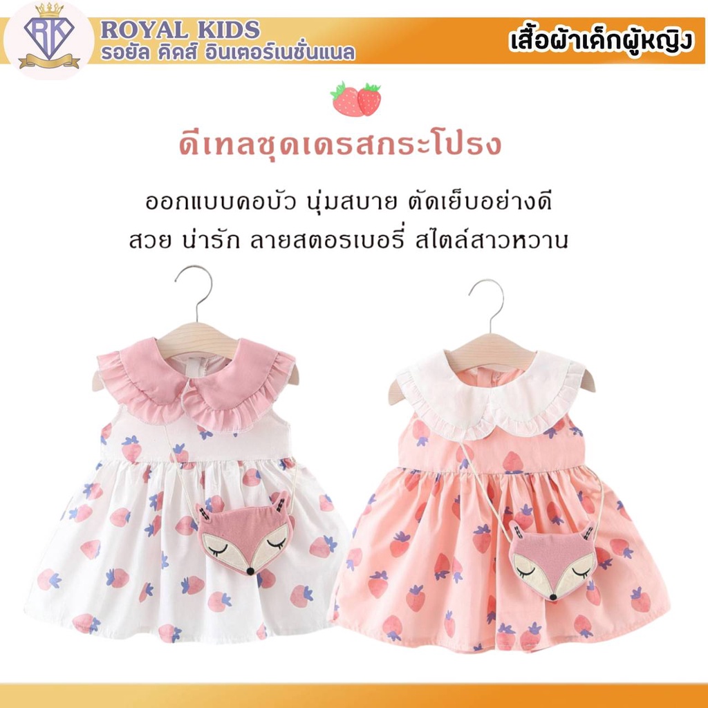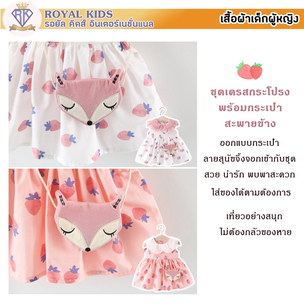 S0019 ชุดเดรสกระโปรง ฟรีกระเป๋าจิ้งจอก ชุดพิมพ์ลายสตรอเบอร์รี่ สําหรับเด็กผู้หญิงอายุ 6 เดือน-3 ปี เสื้อผ้าเด็กผู้หญิง