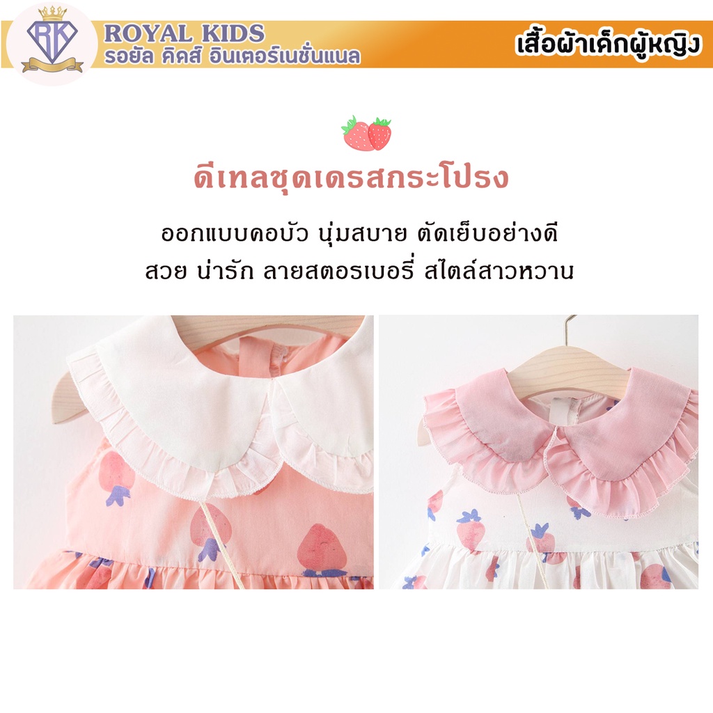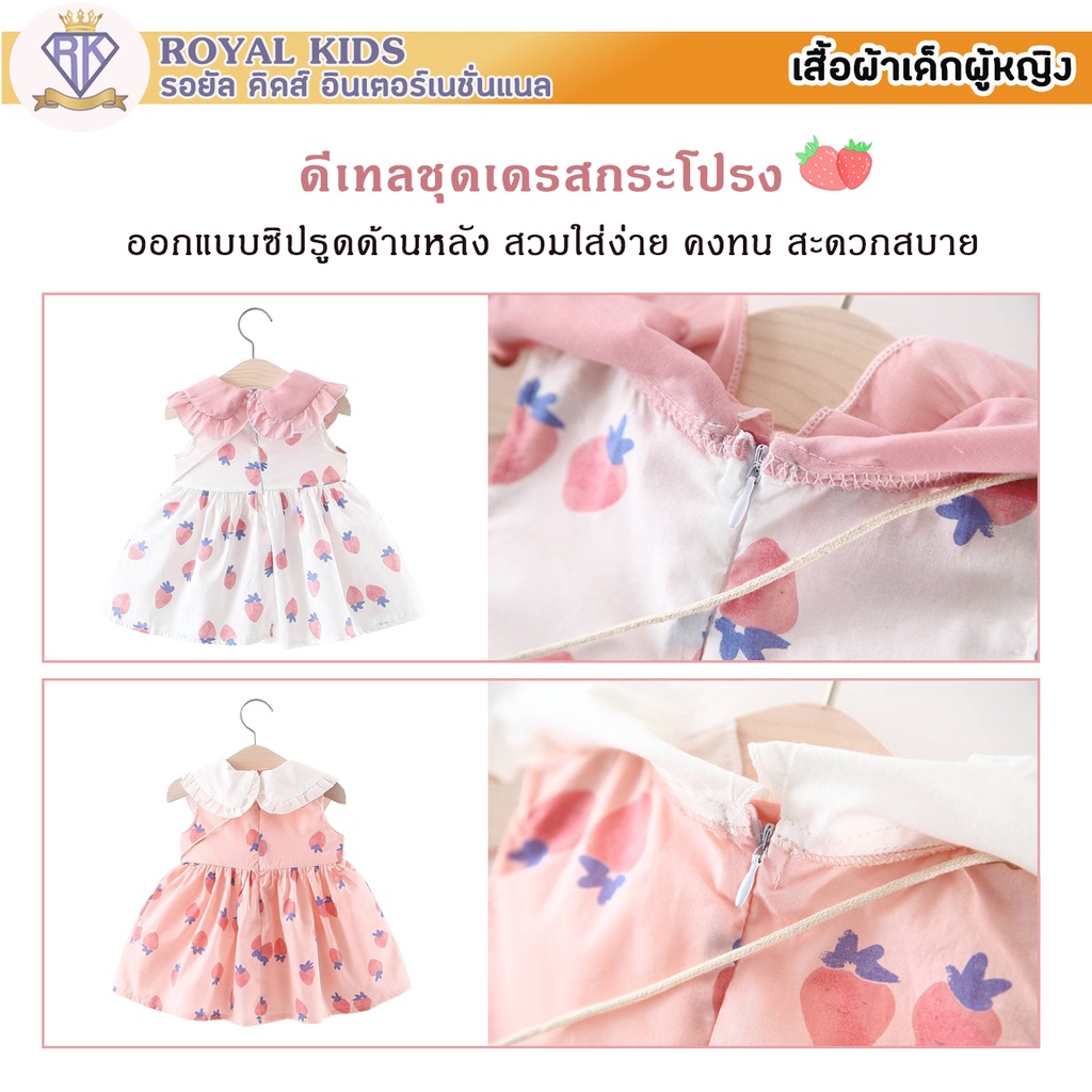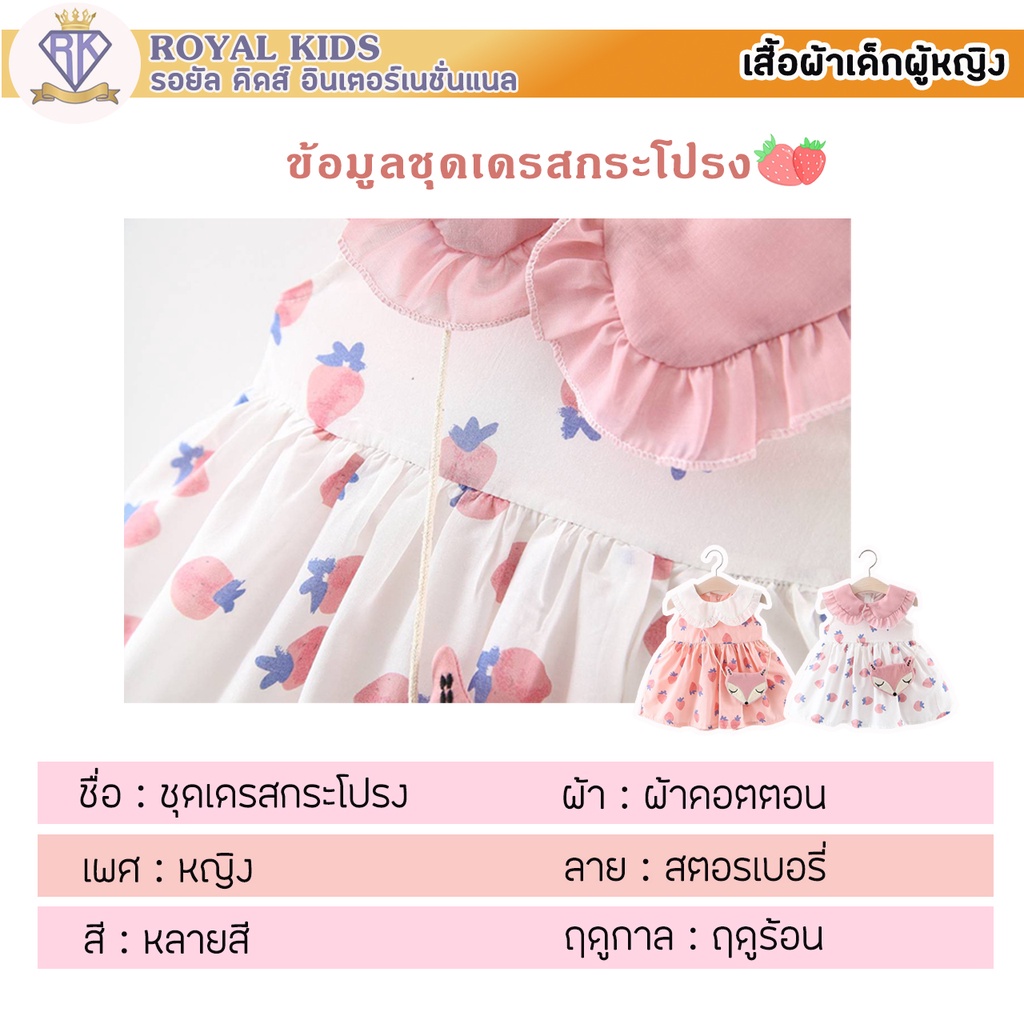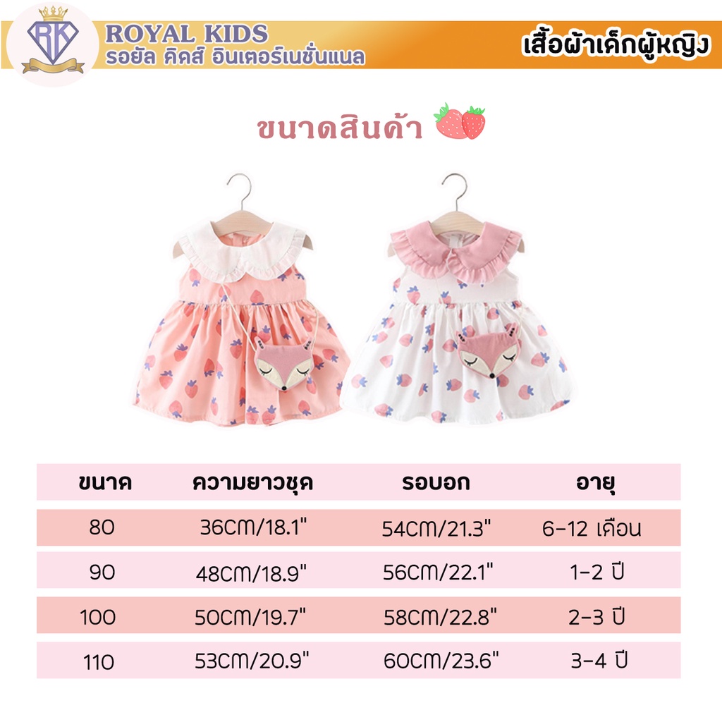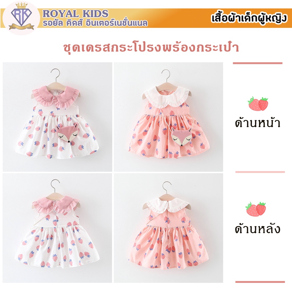 S0019 ชุดเดรสกระโปรง ฟรีกระเป๋าจิ้งจอก ชุดพิมพ์ลายสตรอเบอร์รี่ สําหรับเด็กผู้หญิงอายุ 6 เดือน-3 ปี เสื้อผ้าเด็กผู้หญิง