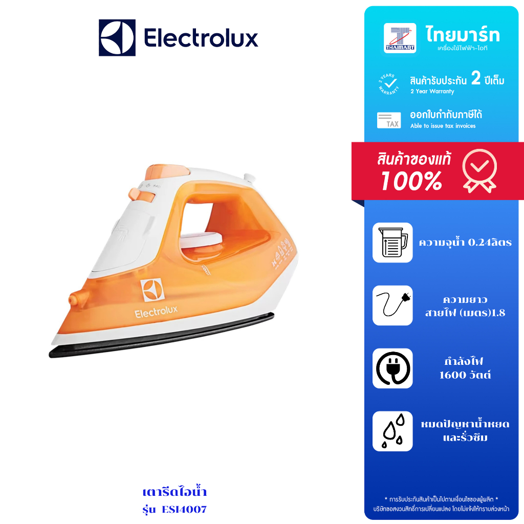 ELECTROLUX เตารีดไอน้ำ รุ่น ESI-4007 กำลังไฟ 1,600 วัตต์ (สีส้ม) รับประกัน 2 ปี