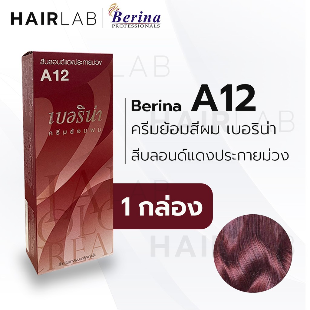 พร้อมส่ง - Berina เบอริน่า A12 สีย้อมผม สีบลอนด์แดงประกายม่วง ยาย้อมผม ปิดผมหงอก ปิดผมขาว ครีมเปลี่ยนสีผม ราคาถูก ส่งไว
