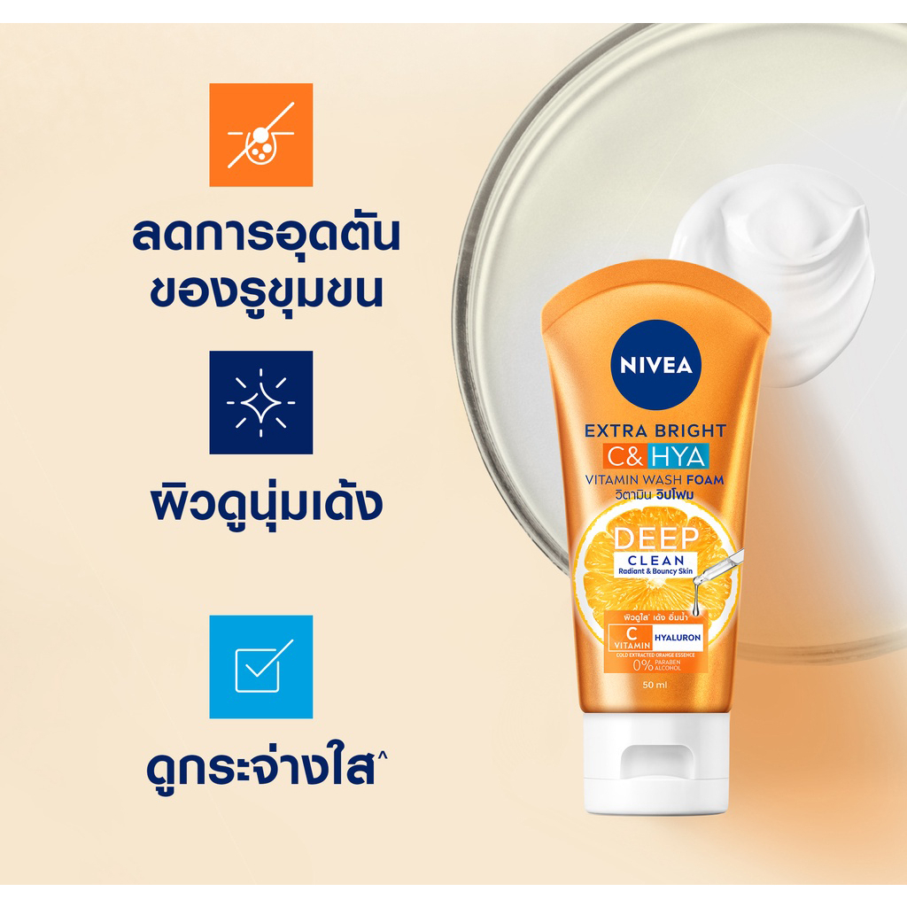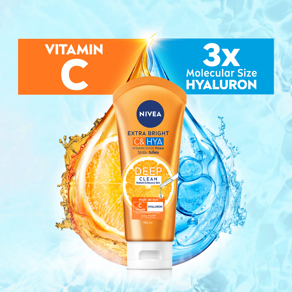NIVEA นีเวีย เอ็กซ์ตร้า ไบรท์ ซี แอนด์ ไฮยา วิตามิน วอช โฟม ผลิตภัณฑ์ทำความสะอาดผิวหน้า