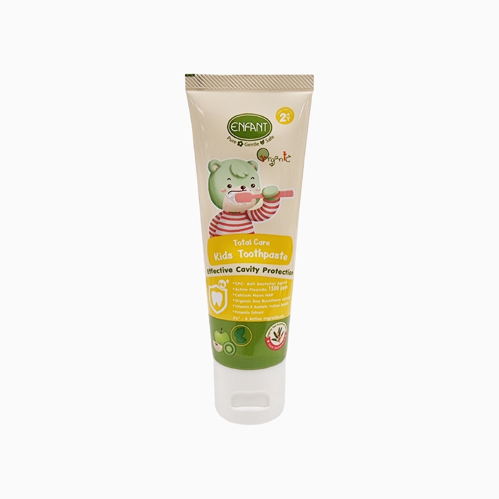ยาสีฟันสำหรับเด็ก 2 ปีขึ้นไปพร้อมแปรงสีฟัน ENFANT ORGANIC PLUS TOTAL CARE KIDS TOOTHPASTE APPLE KIWI MINT 2 YEAR+ 50 ML.