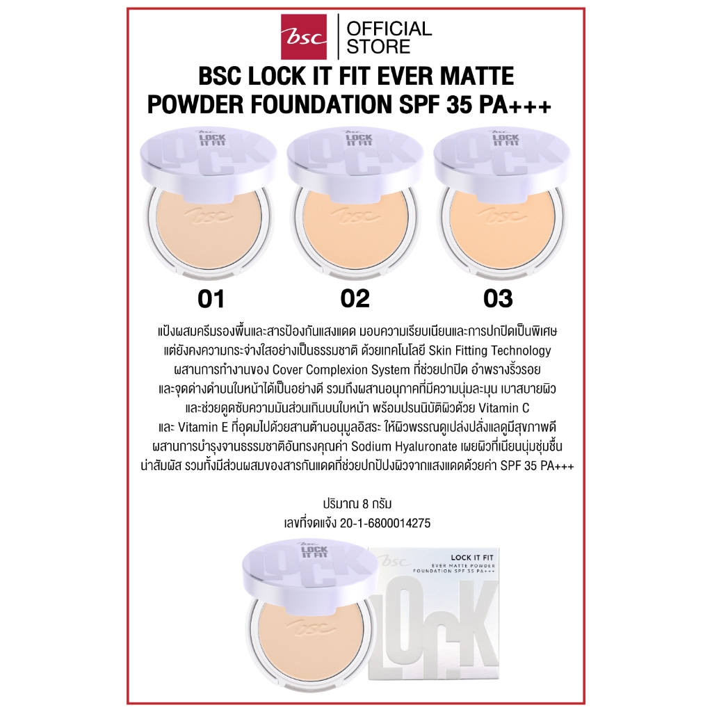 BSC LOCK IT FIT FIX PERFECTING POWDER SPF30 PA++ (ตลับจริง) แป้งผสมรองพื้นเนื้อเนียนละเอียดบางเบา ปกปิดอำพรางริ้วรอย