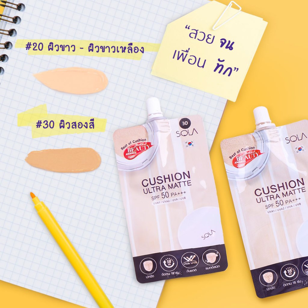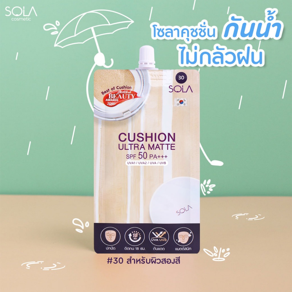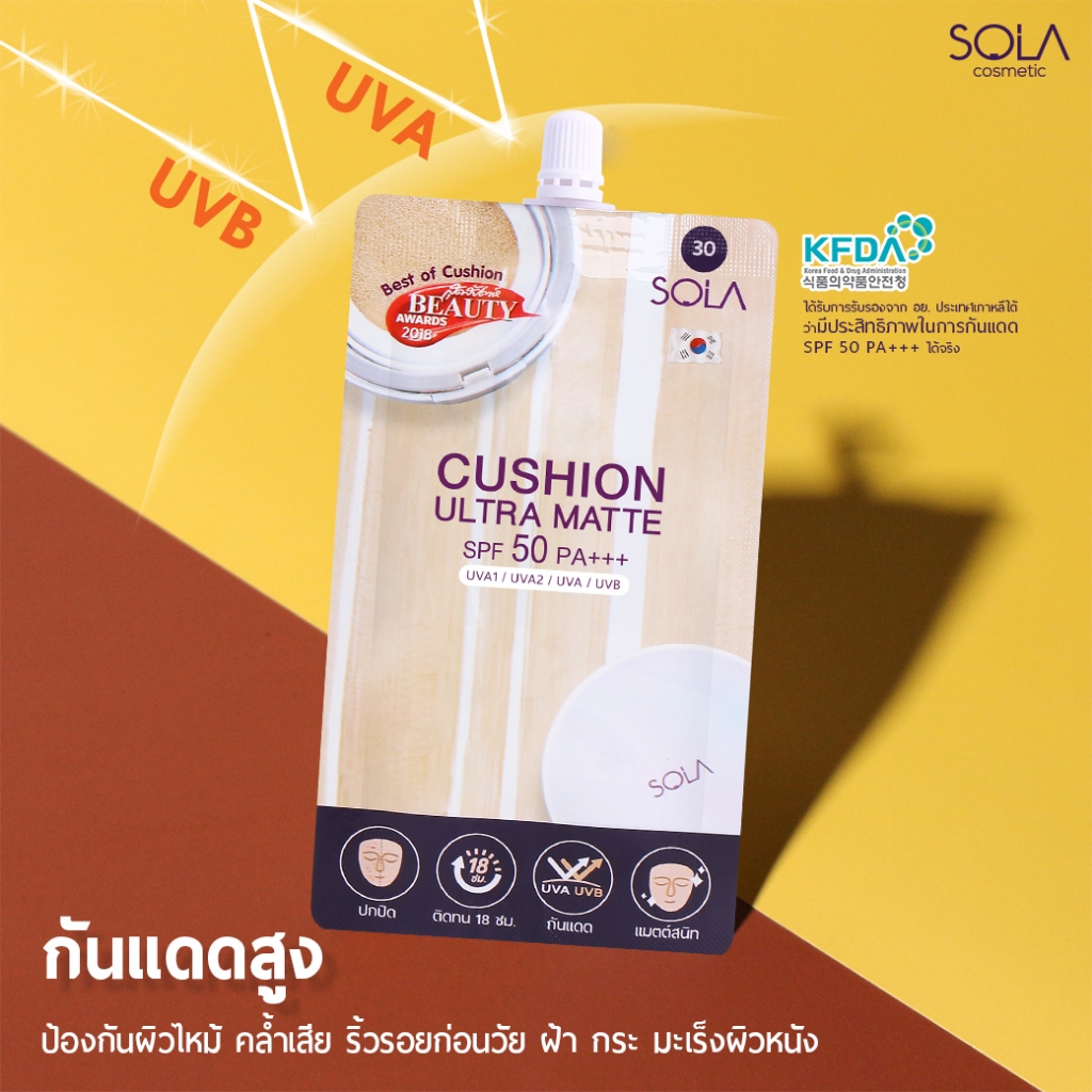 (1 ซอง) ครีมซอง คุชชั่น โซลา อัลตร้า แมท Sola Cushion Ultra Matte SPF50 PA+++ 7ml