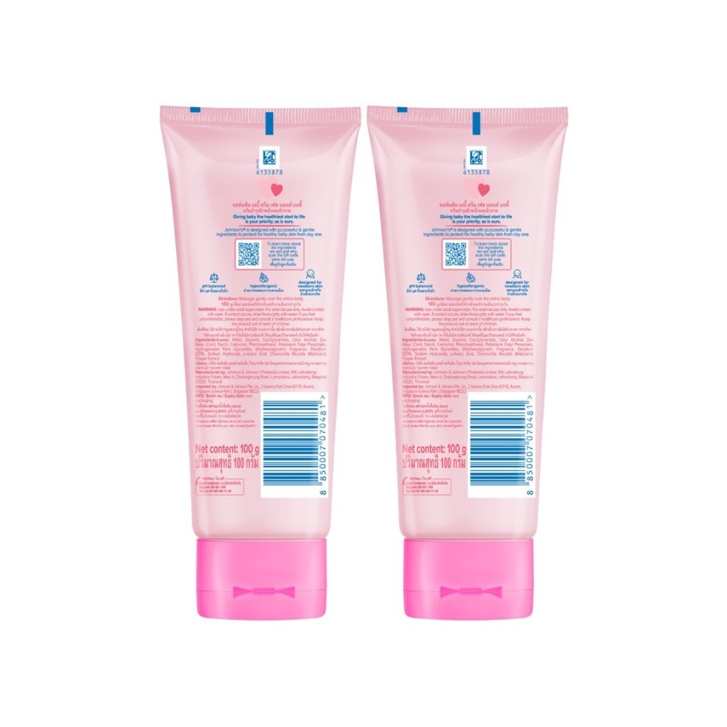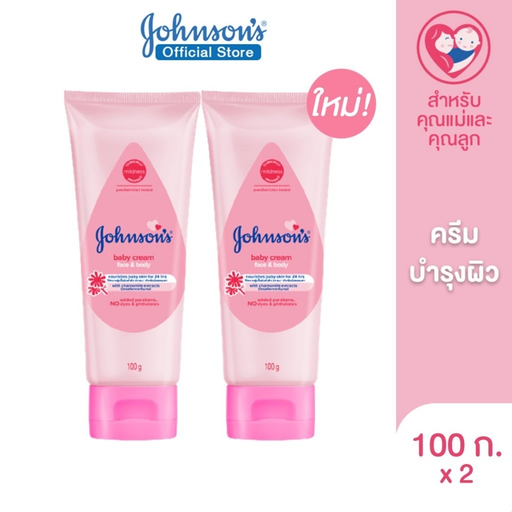 ลดเพิ่ม 30% 🔥 จอห์นสัน เบบี้ ครีม เฟซ แอนด์ บอดี้ 100 ก Johnson's Baby Cream Face & Body 100 g. x2