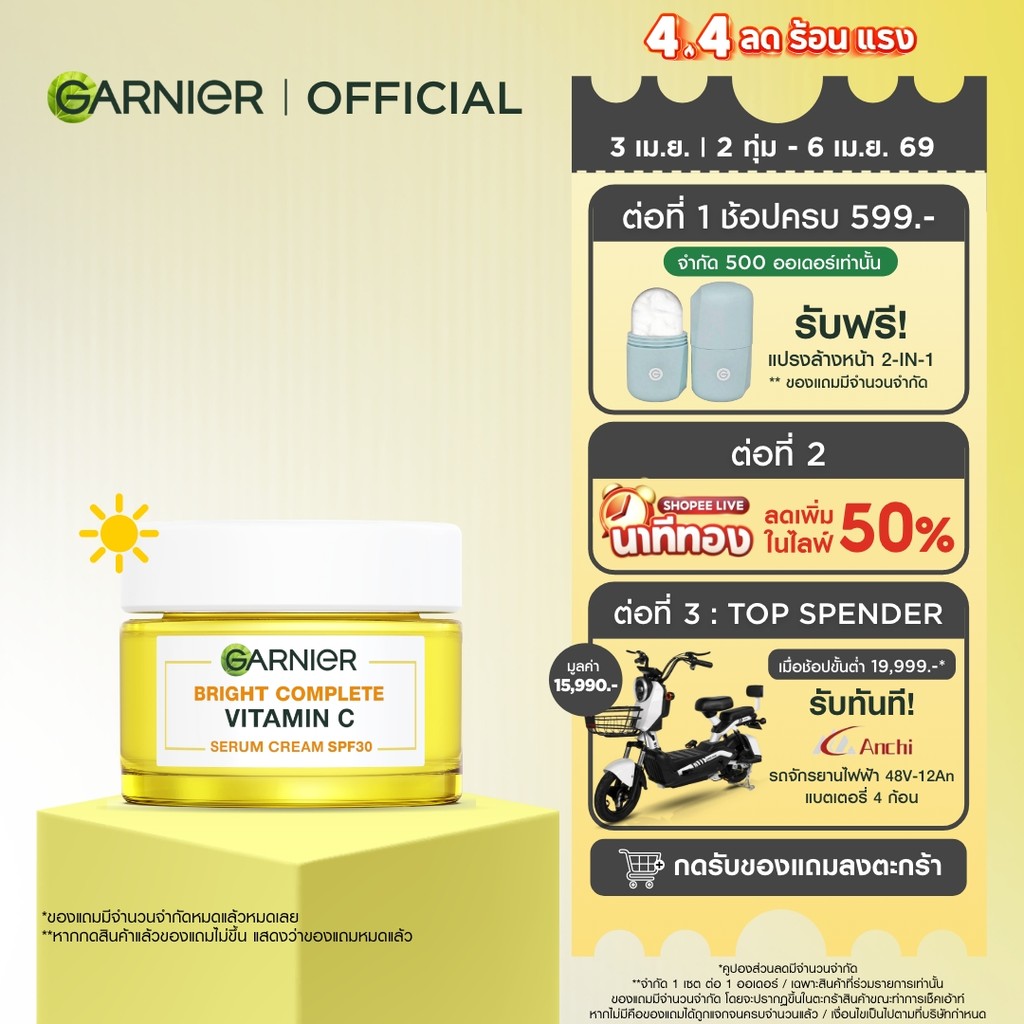 การ์นิเย่ ไบรท์ คอมพลีท ไวท์เทนนิ่ง เซรั่ม ครีม เอสพีเอฟ 30/พีเอ+++ 50 มล. ครีมหน้าใส ครีมบำรุงผิว ครีมบำรุงหน้า ครีมบำร
