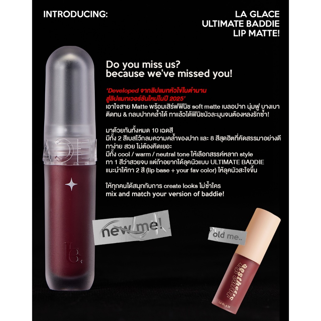 ถูก/แท้/มีไลฟ์ ลิป La Glace Ultimate Baddie Velvet Lip Glaze Matte ลากลาส ลิปแมท ลิปแมทลากลาส บางเบา ละมุน