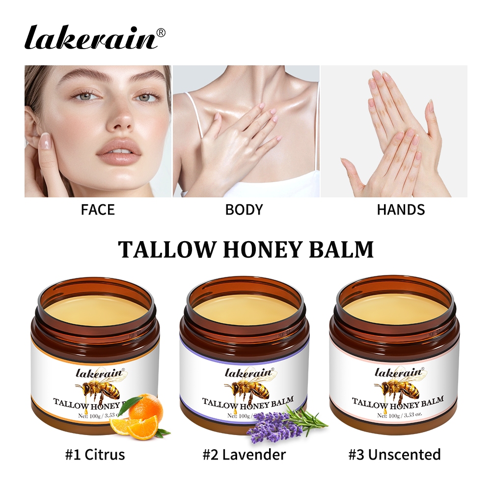 Lakerain Whipped Beef Tallow Balm With Raw Honey Face Moisturizer Cream ,Moisturizing Cream ,Handmade All-Natural Hydration Body Lotion 100g