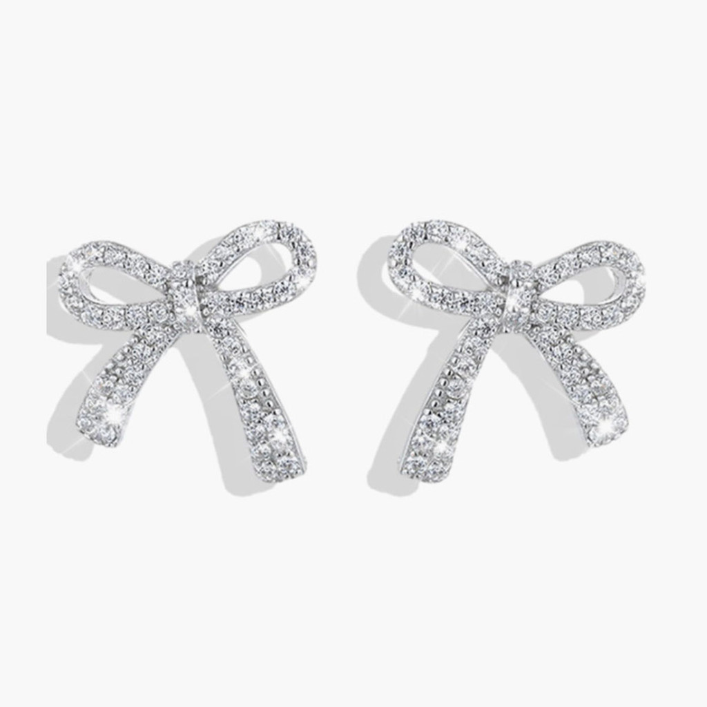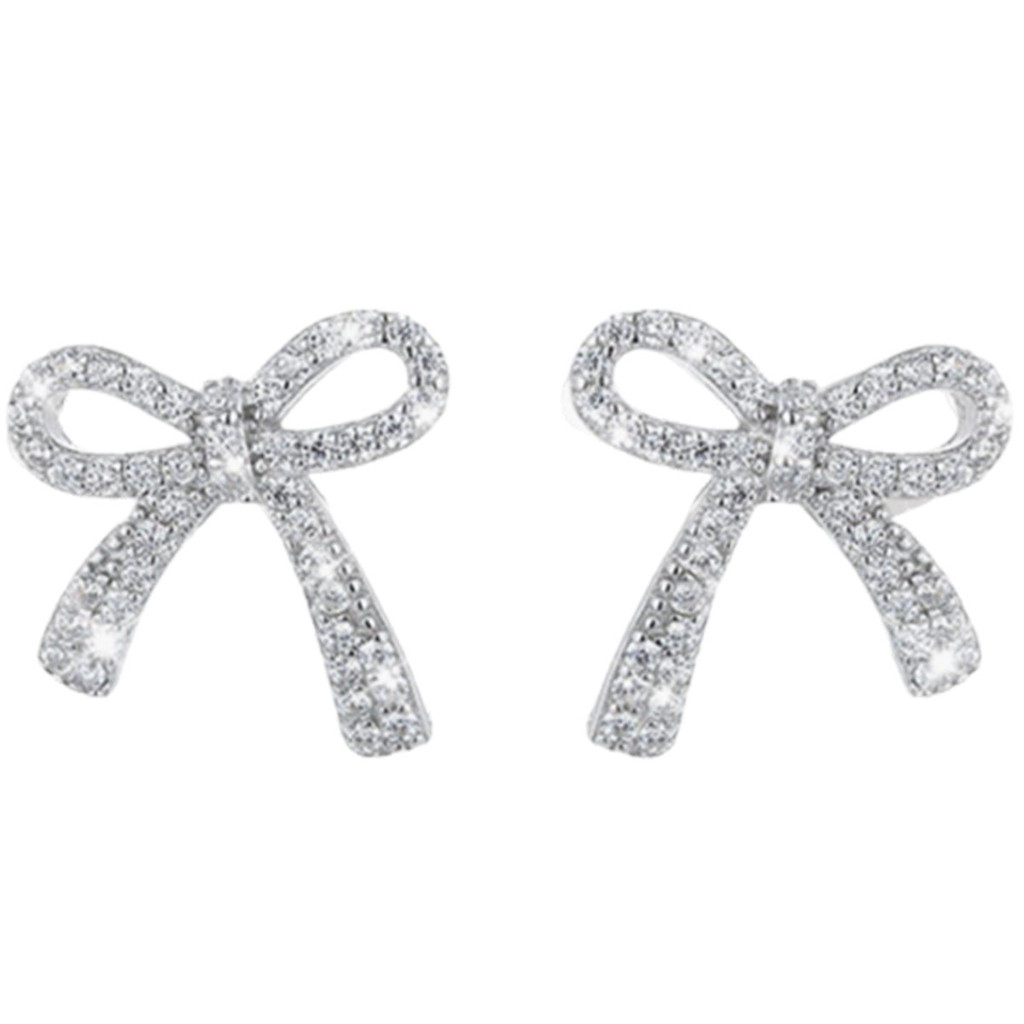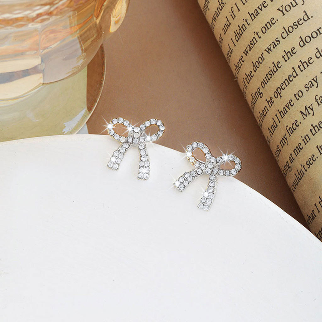 ต่างหูโบว์สำหรับผู้หญิงทันสมัย มาพร้อมพลอยเทียมระยิบระยับ