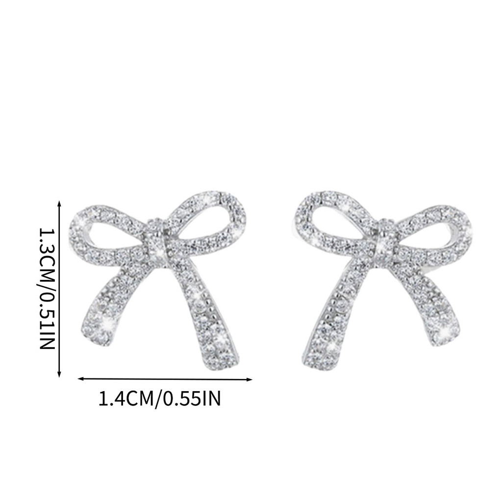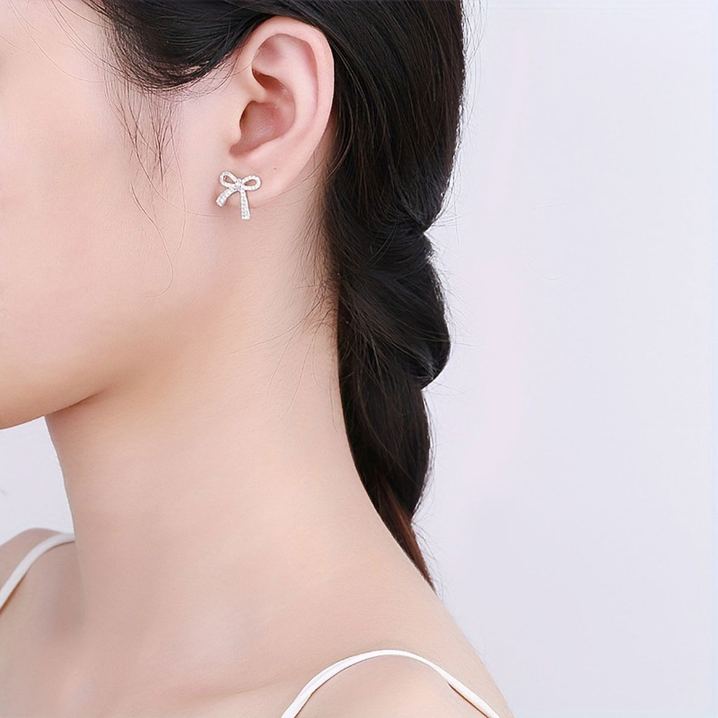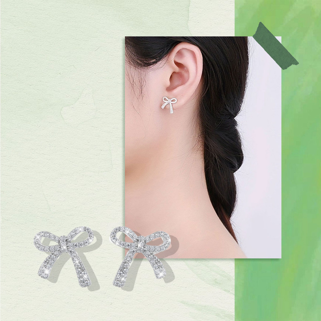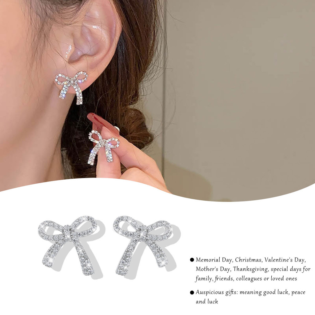 ต่างหูโบว์สำหรับผู้หญิงทันสมัย มาพร้อมพลอยเทียมระยิบระยับ