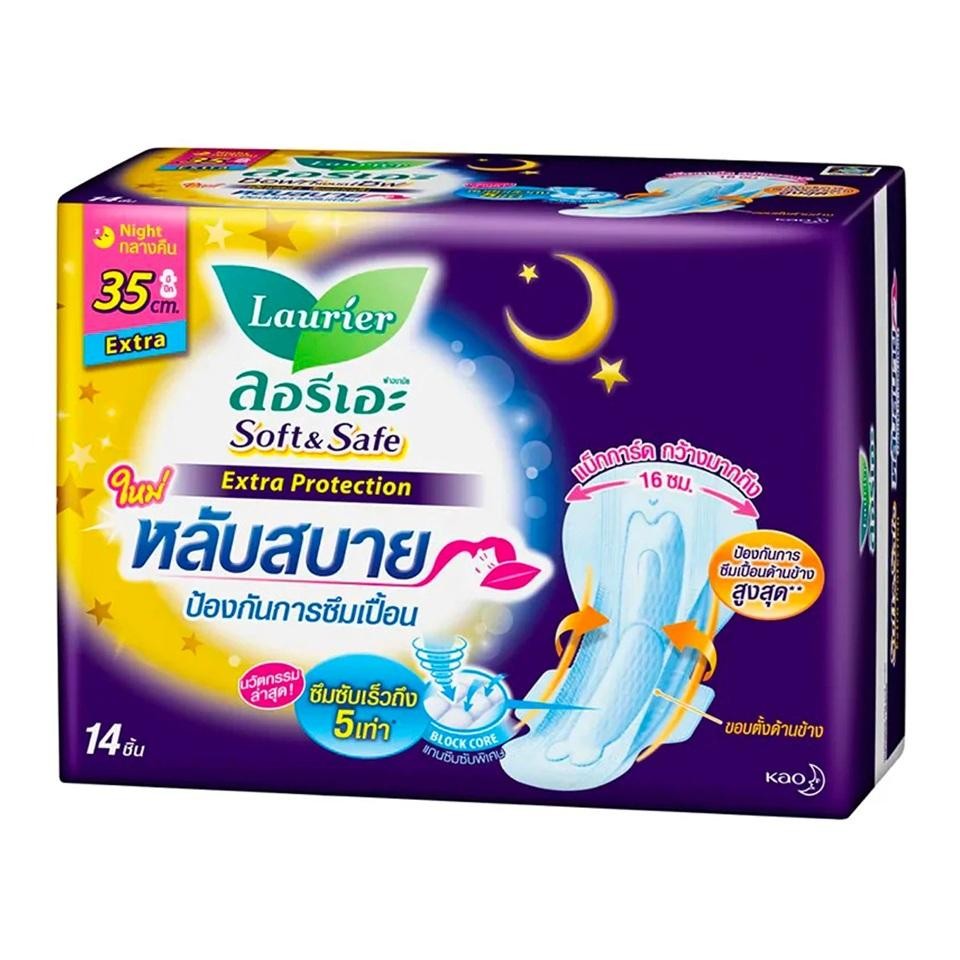 Laurier ลอรีเอะ ซอฟท์แอนด์เซฟ เอ็กซ์ตร้า โพรเทคชั่น ผ้าอนามัยสำหรับกลางคืน 1 ห่อ