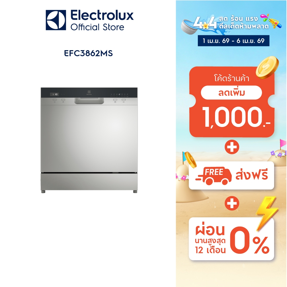 [ติดตั้งฟรี] Electrolux เครื่องล้างจานแบบตั้งโต๊ะ UltimateCare 300 ขนาด 55 ซม. พร้อมที่วางจาน 8 จุด รุ่น EFC3862MS