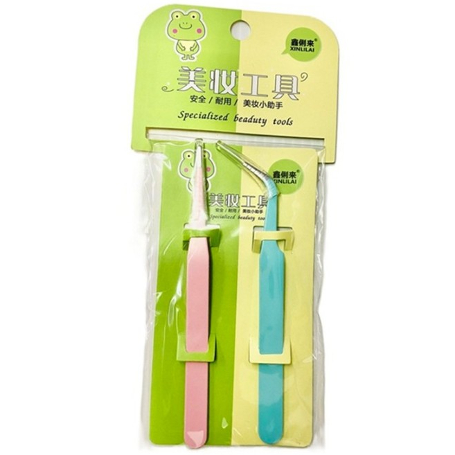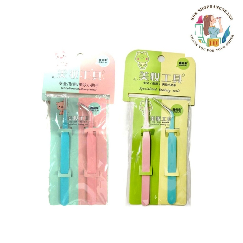 แหนบติดขนตาปลอม 2 ชิ้น หัวโค้ง หัวตรง By Xinlilai