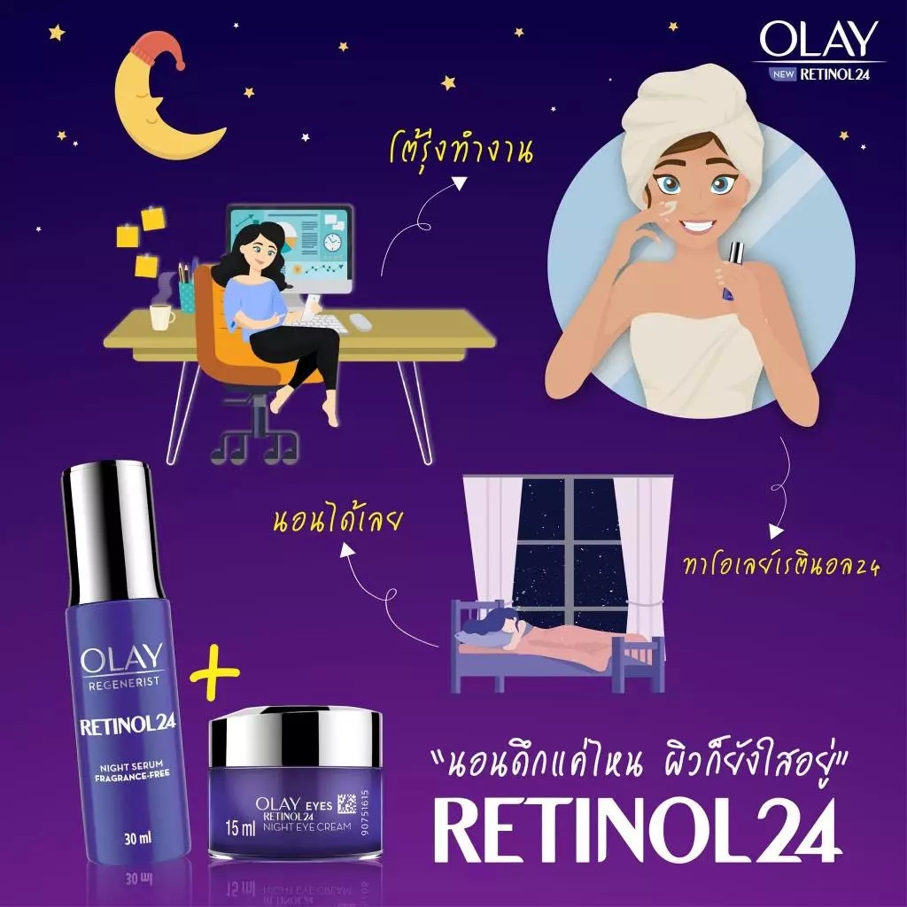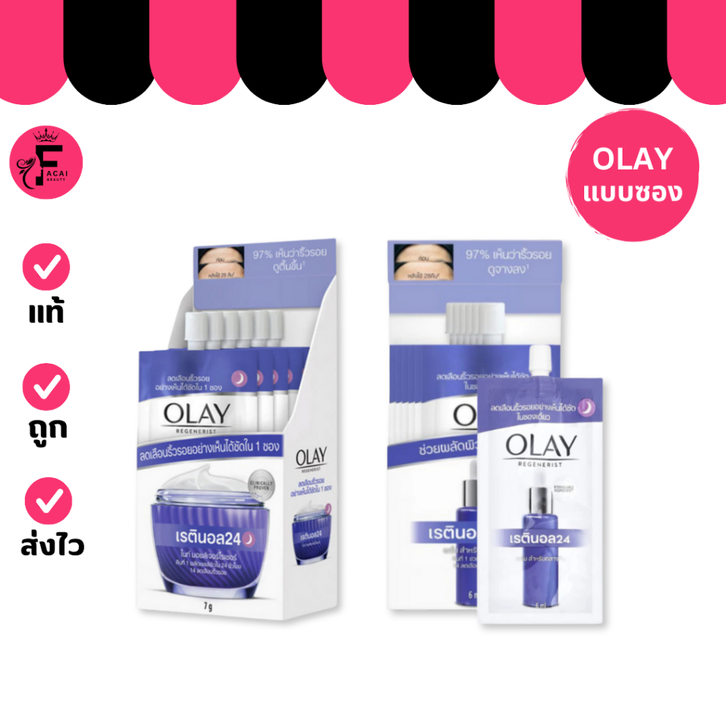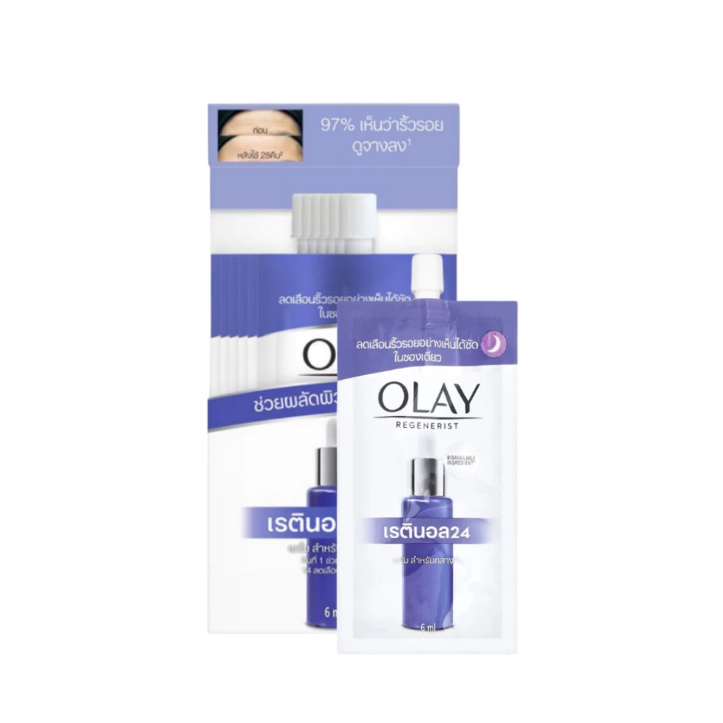 (1 ซอง) Olay เรตินอล 24 เซรั่ม/มอยส์เจอร์ไรเซอร์ มีให้เลือก 2 สูตร (ปริมาณ 6 ml./ 7 g.)