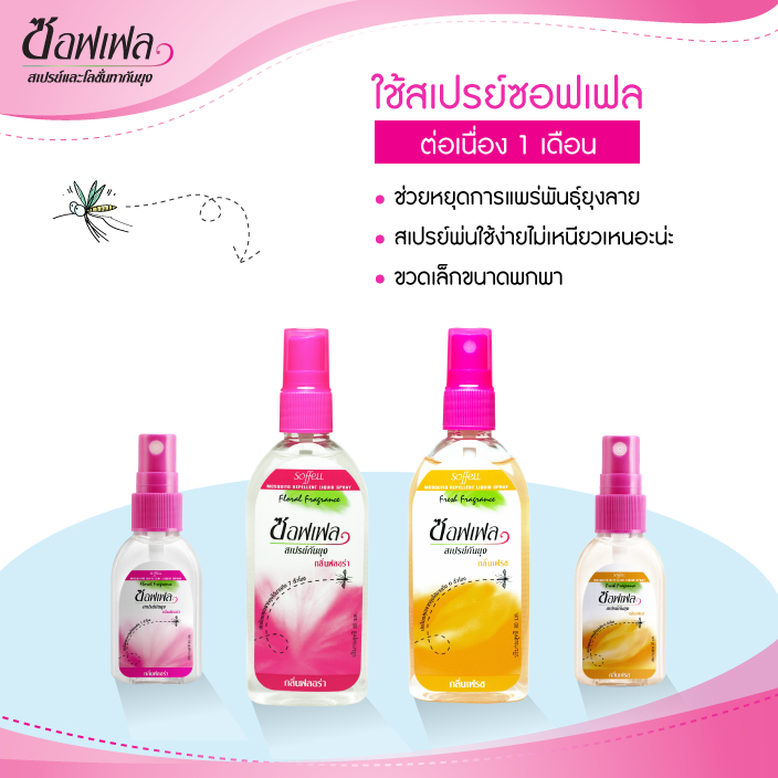 ซอฟเฟล สเปรย์กันยุง กลิ่นฟลอร่า ขนาด 80 มล./Soffell Floral Spray 80 ml.