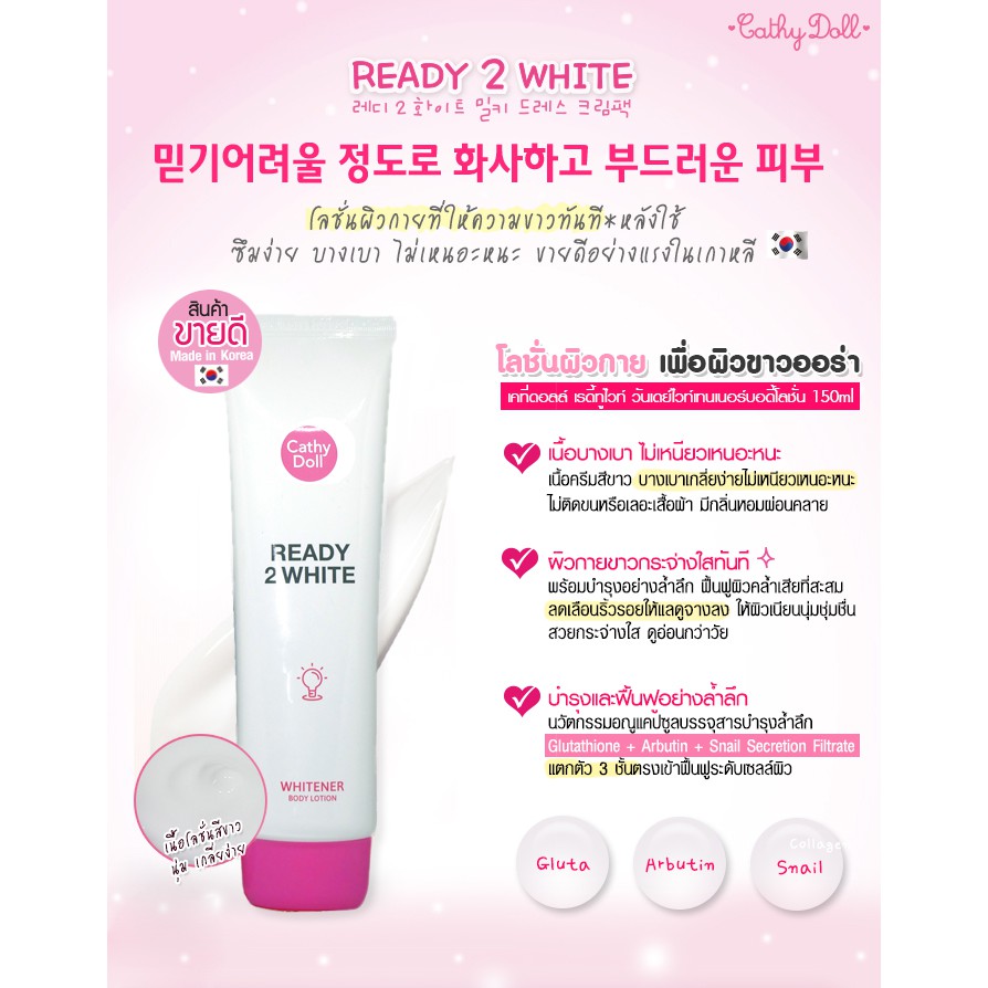 โลชั่นเรดี้ทูไวท์ Cathy Doll Ready 2 White Whitener Body Lotion 150 ml.