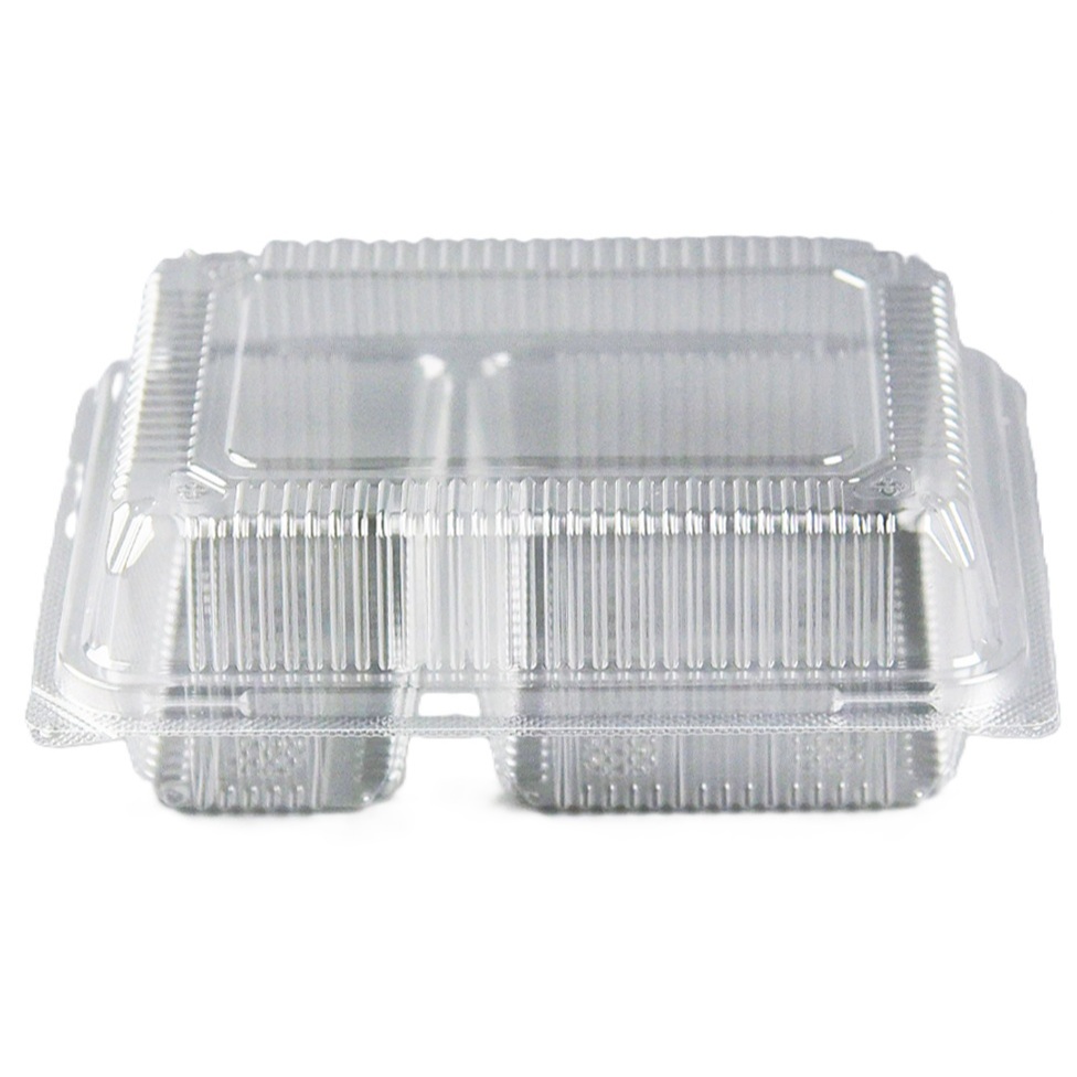 กล่องพลาสติกใส ใส่อาหาร OPS HTP-204L กล่อง 2 ช่อง ฝาล็อคได้ แพ็ค/100 ชิ้น