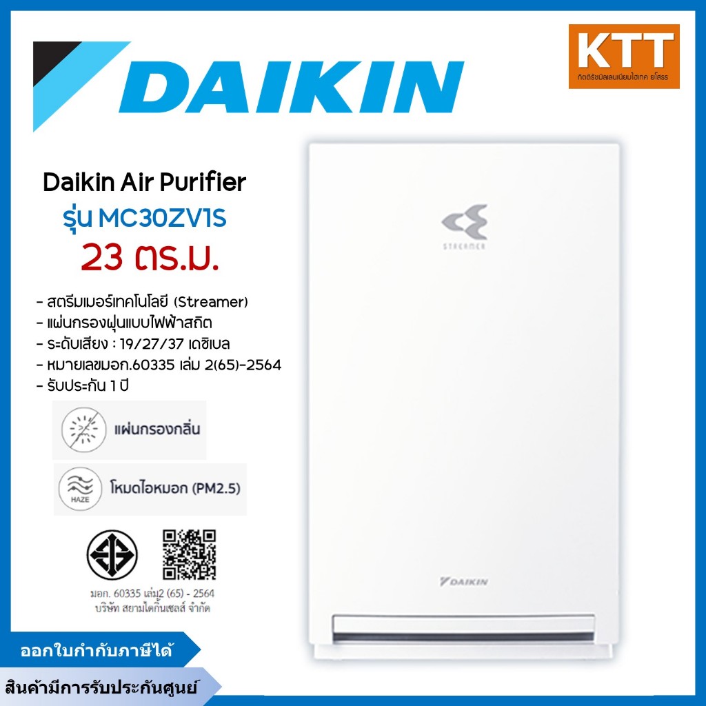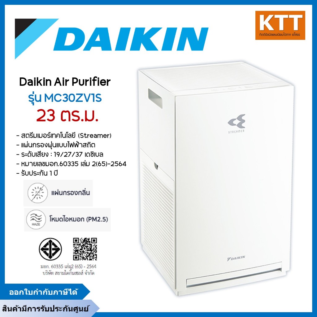 ไดกิ้น Daikin เครื่องฟอกอากาศ รุ่น MC30ZV1S ขนาดพื้นที่ไม่เกิน 23 ตารางเมตร พร้อมส่ง