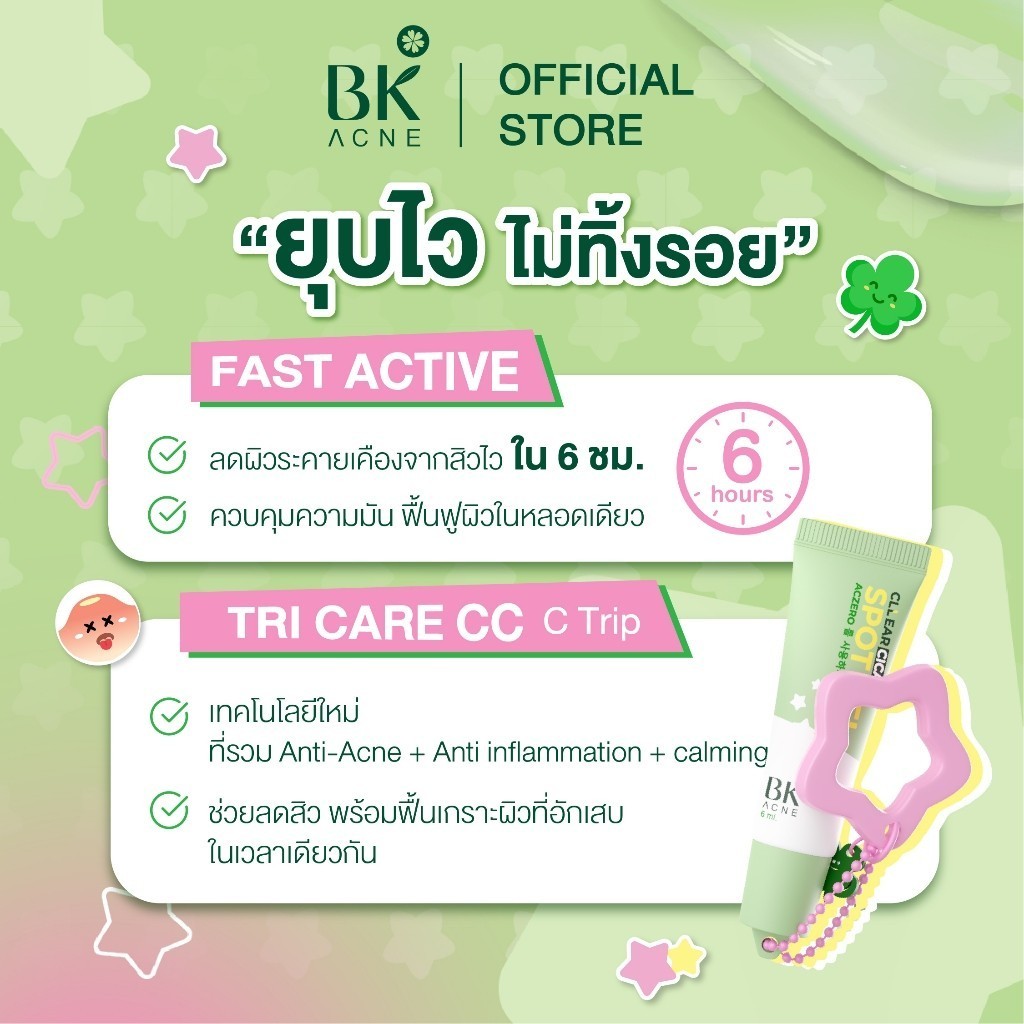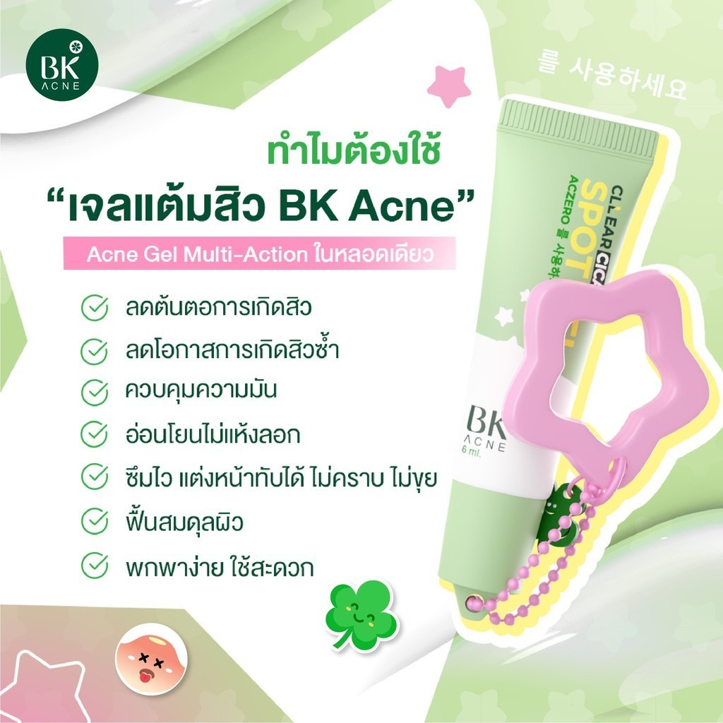 (1ชิ้น) BK Acne Cllear Cica Spot Gel 6g. สูตรใหม่ เจล