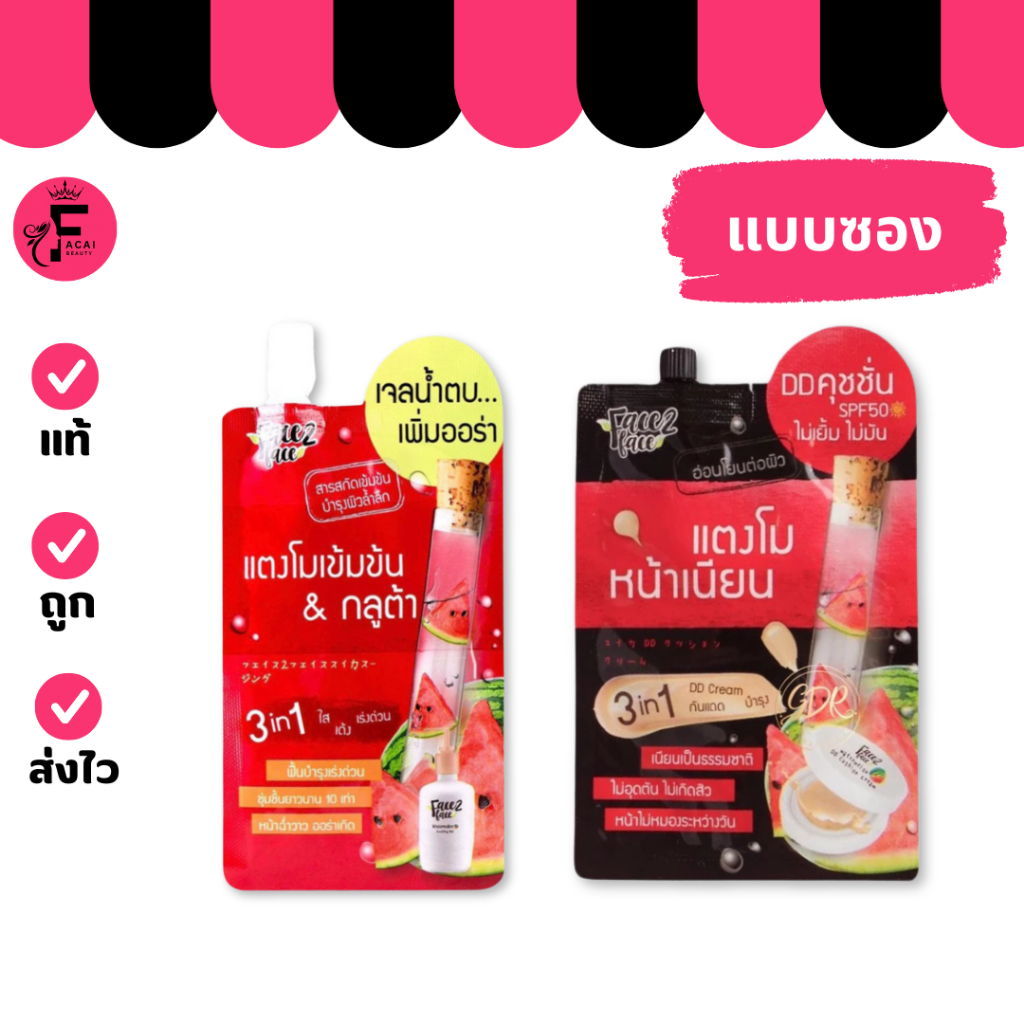 (1 ซอง) Face 2 Face เจลน้ำตบ/ DD คุชชั่น( ปริมาณ 8/50 กรัม)