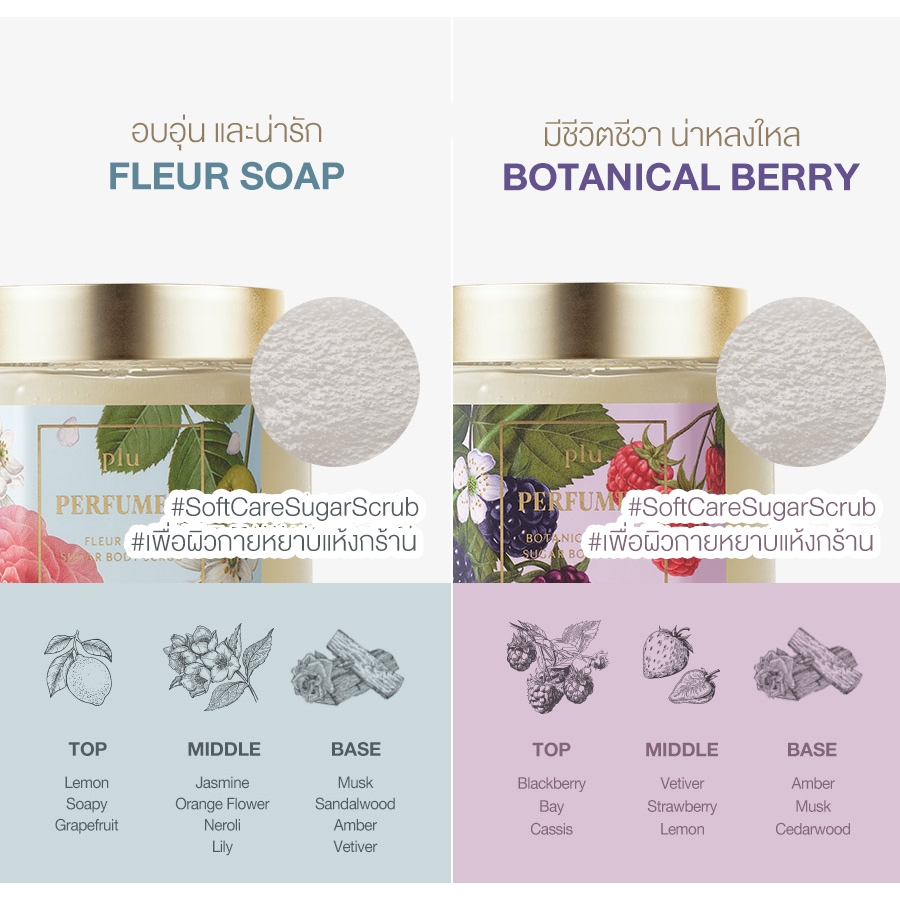 [พร้อมส่ง/ของแท้ฉลากไทย]PLU PERFUMED BODY SCRUB 500Gบอดี้สครับสูตรน้ำตาล ช่วยขจัดเซลล์ผิวที่เสื่อมสภาพแล้วอย่างอ่อนโยน
