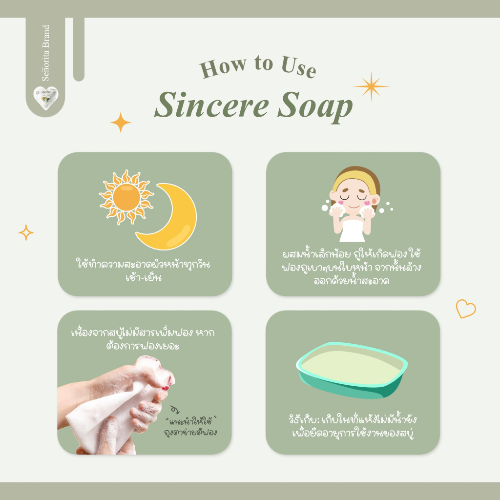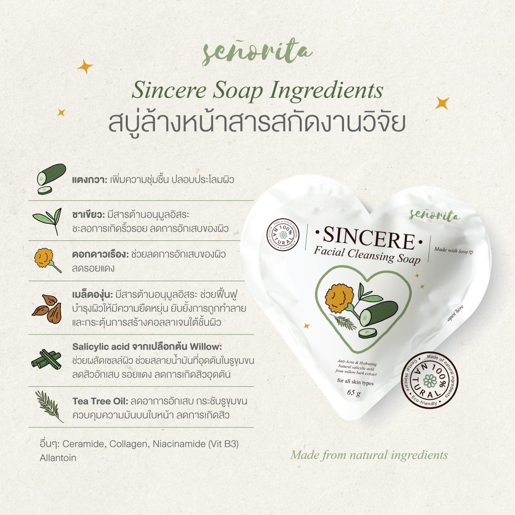 Seño Sincere Facial Cleansing Soap ซินญอ สบู่ซินเซีย ลดสิว ลดความมัน เนียนนุ่ม ชุ่มชื้น