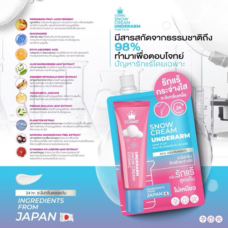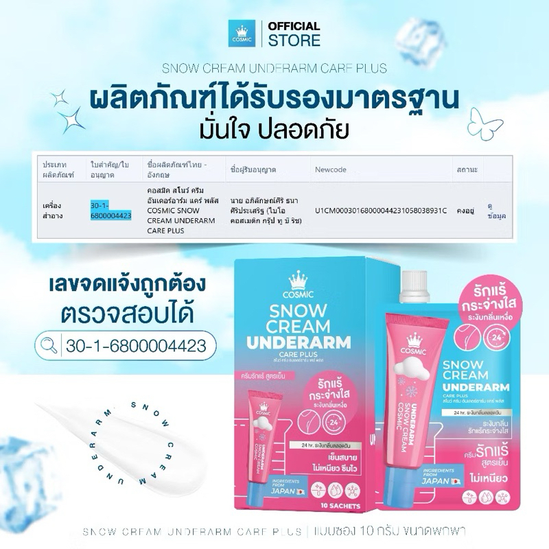 COSMIC SNOW CREAM UNDERARM CARE PLUS คอสมิค ครีมเต่าเย็น ครีมทารักแร้ สูตรเย็น ลดกลิ่นลดเหงื่อ