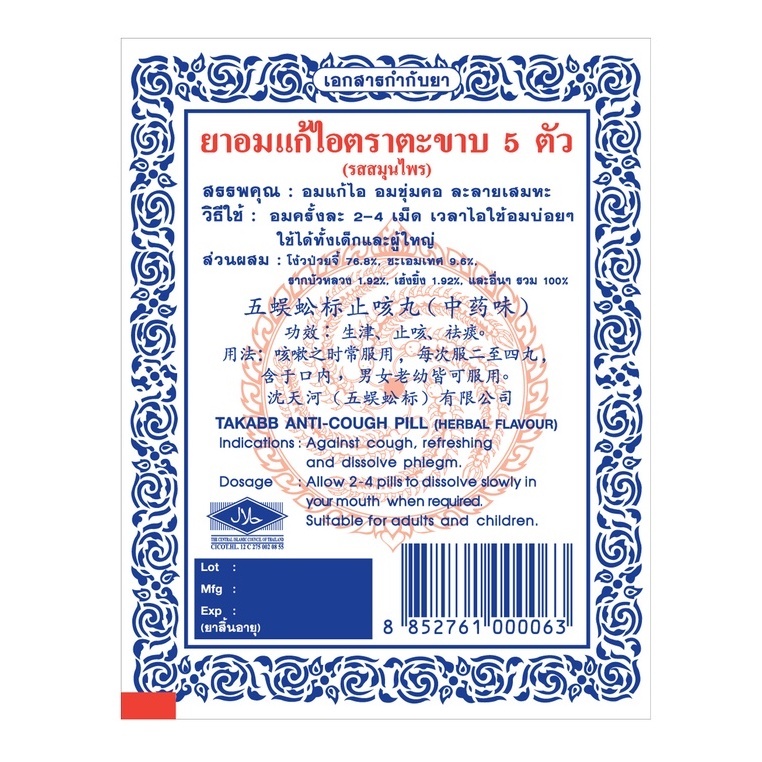 ยาอมแก้ไอ สเปรย์ ตราตะขาบ 5 ตัว ชนิดซอง/ตลับ รสสมุนไพร