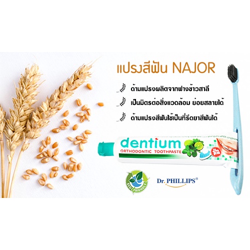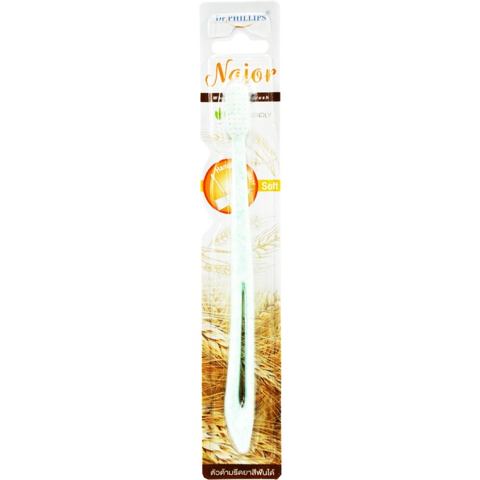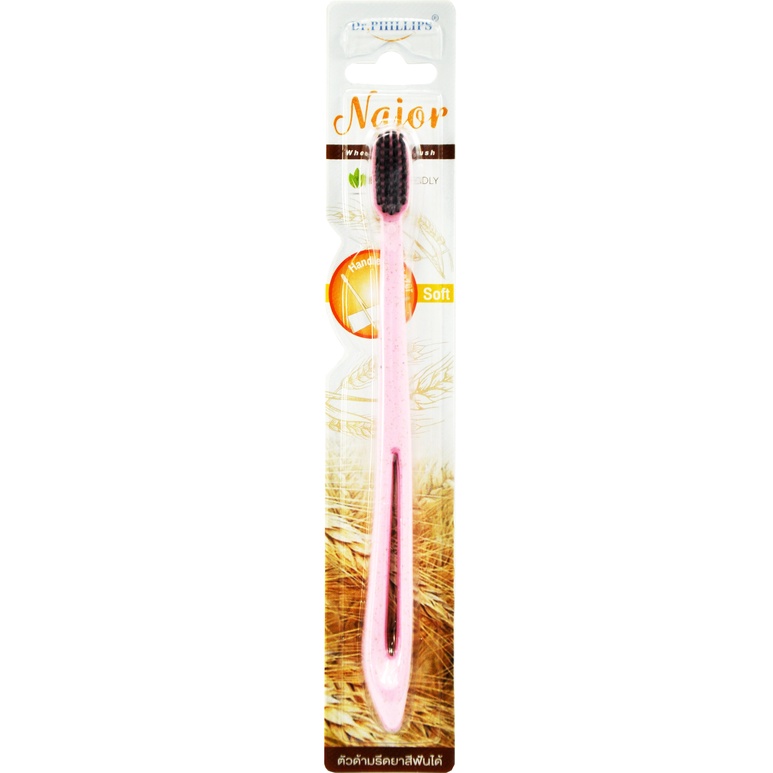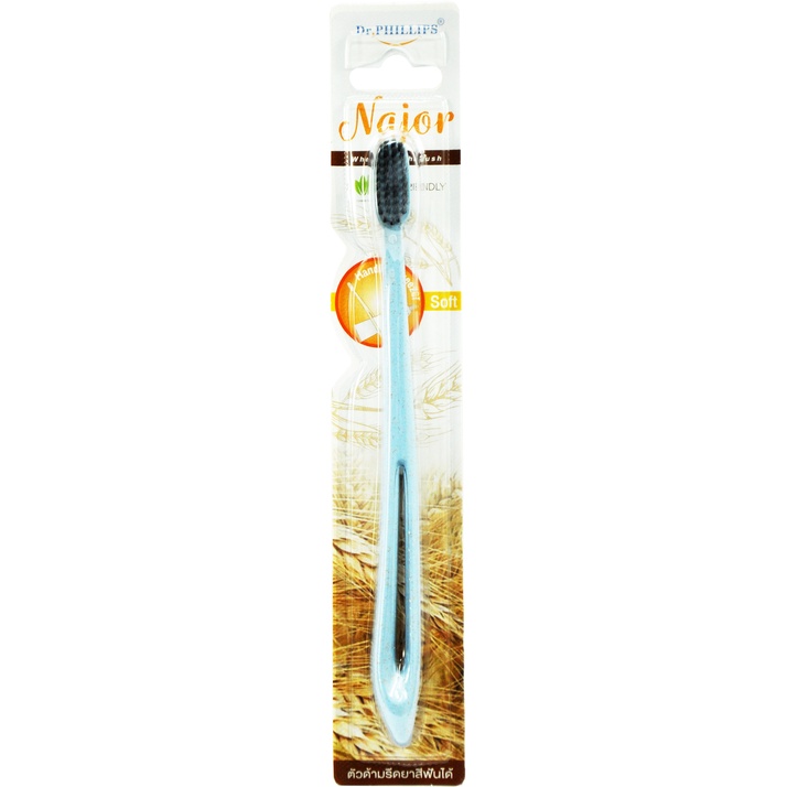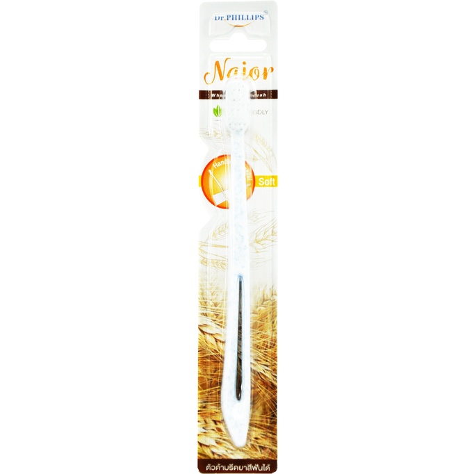 DR.PHILLIPS NAJOR แปรงสีฟันพร้อมที่รีด คละสี ขาว/ดำ ตัวด้ามผลิตจากฟางข้าวสาลี #9471