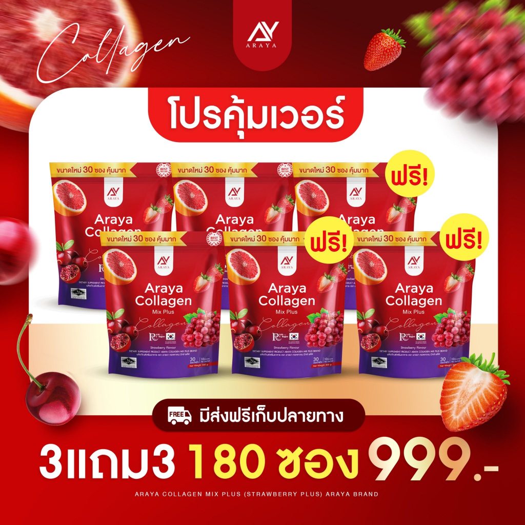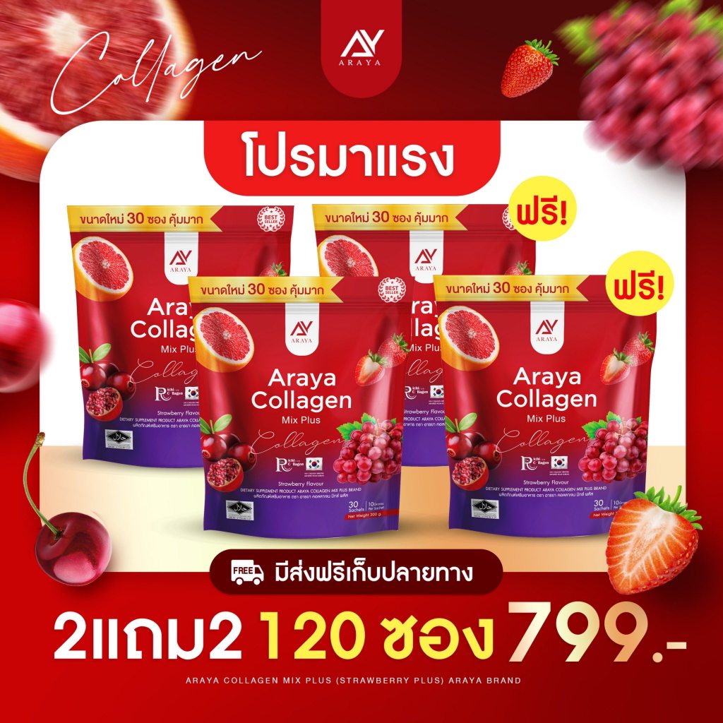 แท้ ✅Araya Collagen Mix Plus อารยา คอลลาเจน มิกซ์พลัส เพิ่มการใส่ใจ ตัวเอง 1ห่อ 30 ซอง