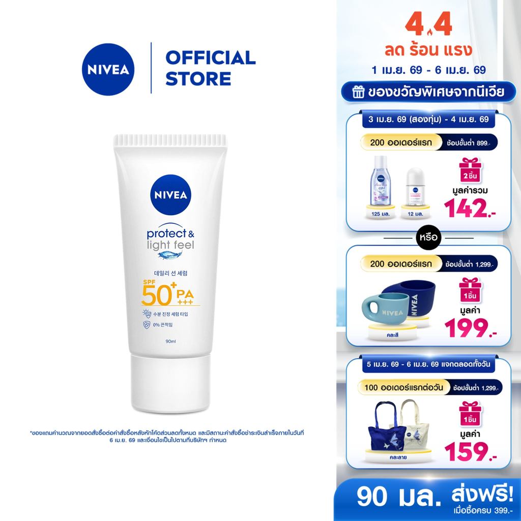 นีเวีย เซรั่มกันแดดผิวหน้า ซัน เซนส์ซิทีฟ โพรเท็ค แอนด์ ไลท์ ฟีล เอสพีเอฟ50+ พีเอ+++ 90 มล. NIVEA