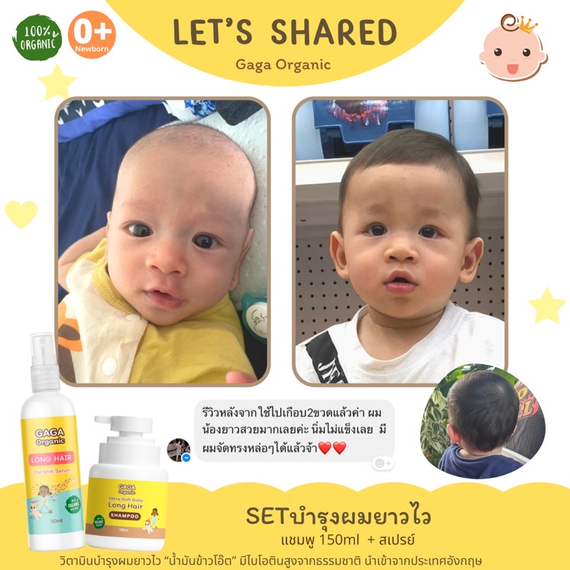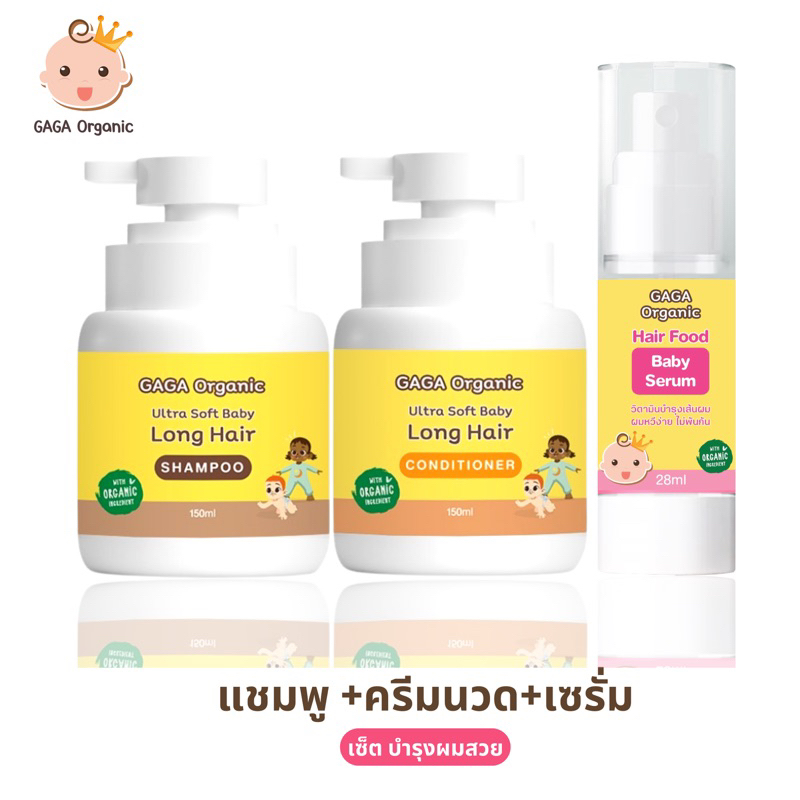 [Setผมยาวไว20วัน] GAGA เร่งผมยาวเด็ก เพิ่มผมหนา แรกเกิดใช้ได้ (แชมพู+สเปรย์) gaga organic