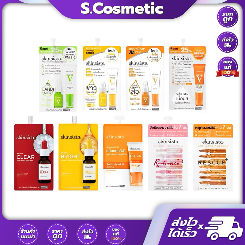 [1 ซอง] Skinsista สกินซิสต้า เพอร์เฟค เคลียร์ / ฟลาวเลส ไบร์ท / วิตซี / วี แอคเน่ / วีบล็อก / บล็อคไฮบิด / วี สมูท