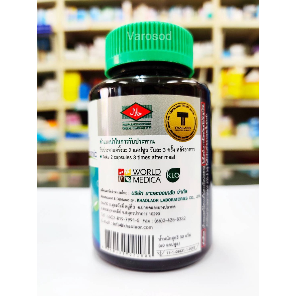 สาหร่าย สไปรูลิน่า 500 ขาวละออ สาหร่ายเกลียวทอง Spirulina Spilina 500 KHAOLAOR 60 แคปซูล 1 ขวด World Medica