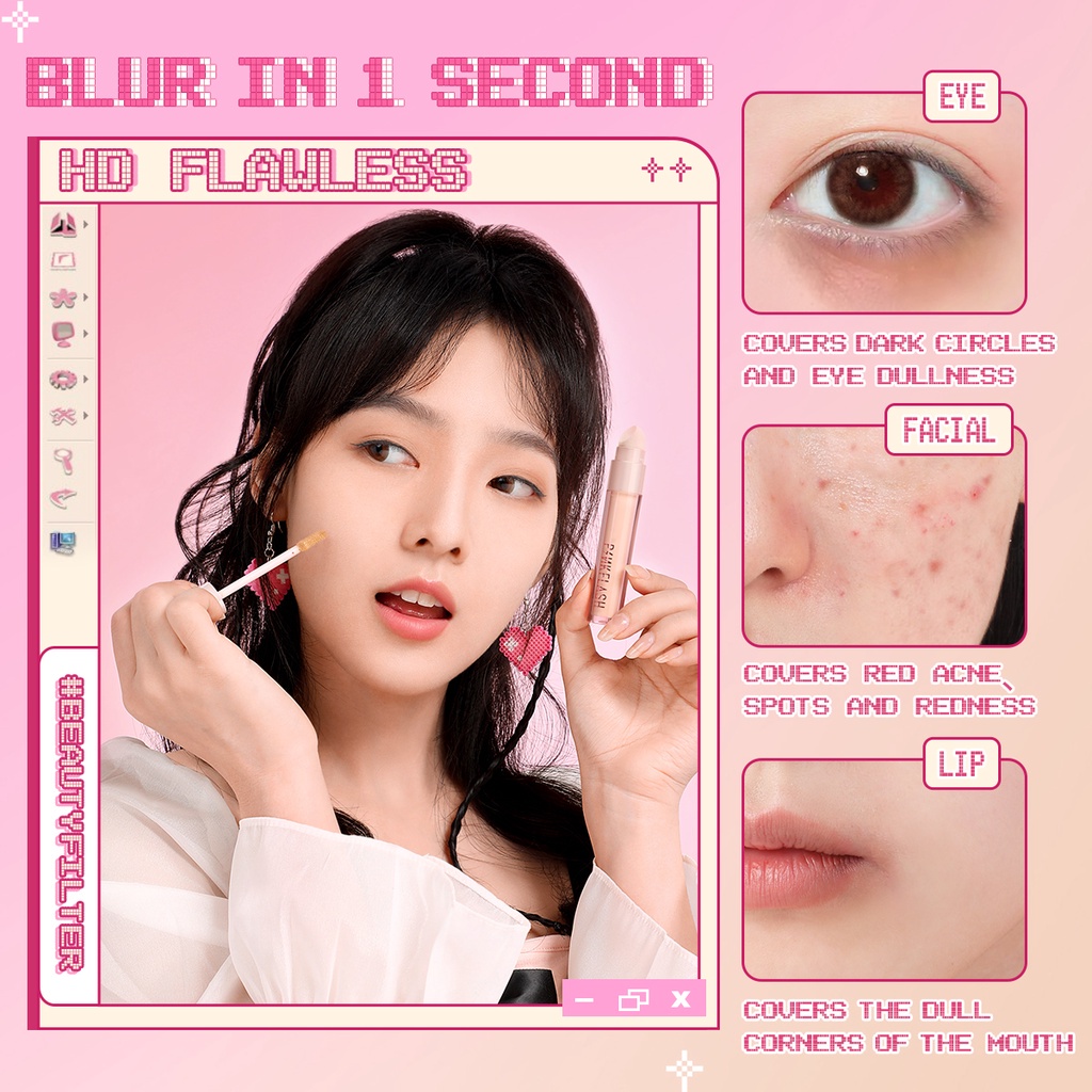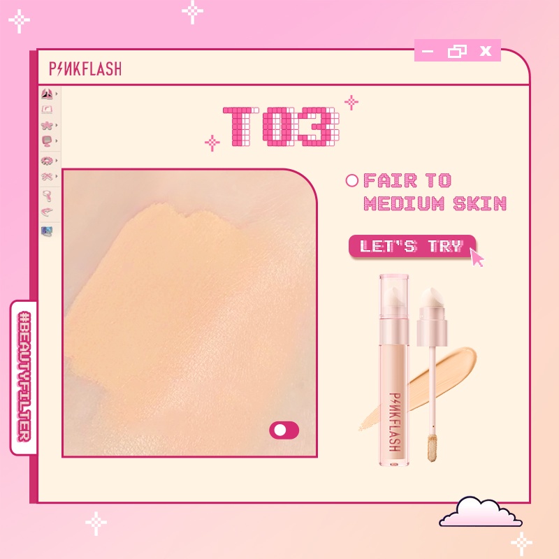 Pinkflash #Beautyfilter คอนซีลเลอร์เนื้อลิขวิด ไร้ที่ติ พร้อมแปรงฟองน้ํา ระบายอากาศ ให้ความชุ่มชื้น ไม่ก่อให้เกิดโรค ติดทนนาน ไม่เหนียวเหนอะหน ะ